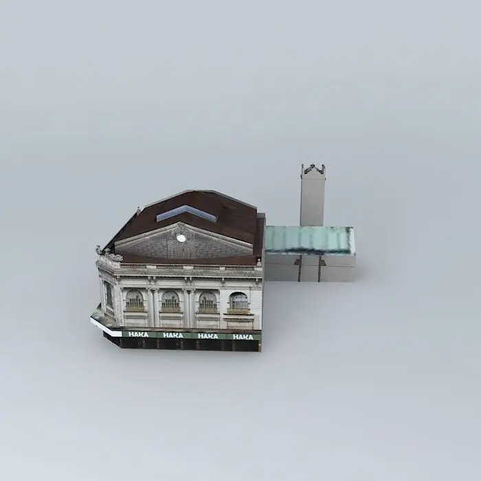 This 3D model was originally created with Sketchup 7 and then converted to all other 3D formats. Native format is .skp 3dsmax scene is 3ds Max 2016 version, rendered with Vray 3.00 Building that belonged to the movies and Royal Theatre, after the close of this had various uses, including the disco. Although part of the plan of urban heritage preservation, today its fate is uncertain. Meanwhile the ground floor is used by various shops, a bar and a garage. In an old tower model (now almost hidden by the surrounding buildings) that was part of a liquor factory and shows that for some time was used as announcer auditorium