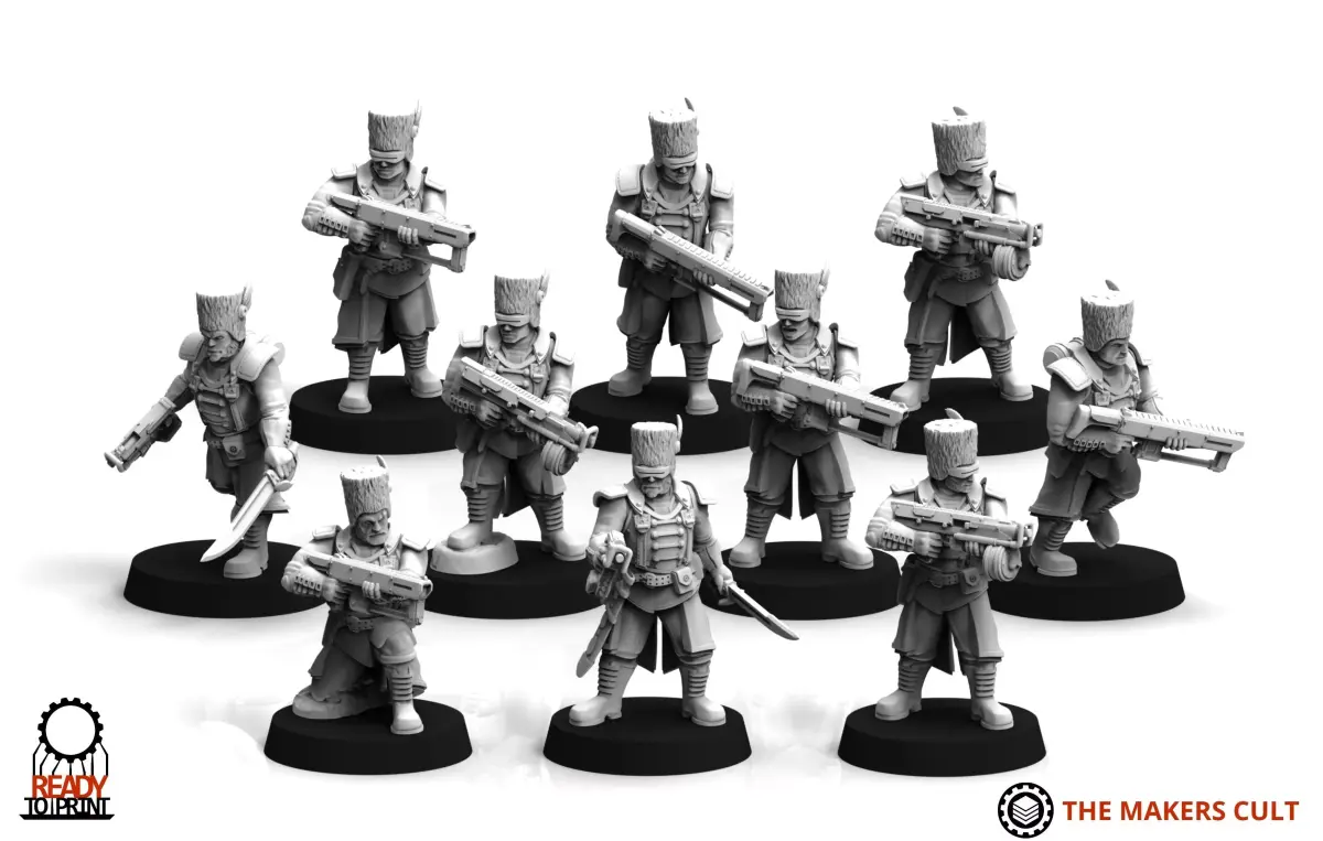 This is a kit for printing out any number of Exalted Scions infantry squads. Comes with various rifle and pistol poses and options. Fully modular, files are split into head, arms torso and legs. Ten basic leg poses that can be mirrored for an additional 10.