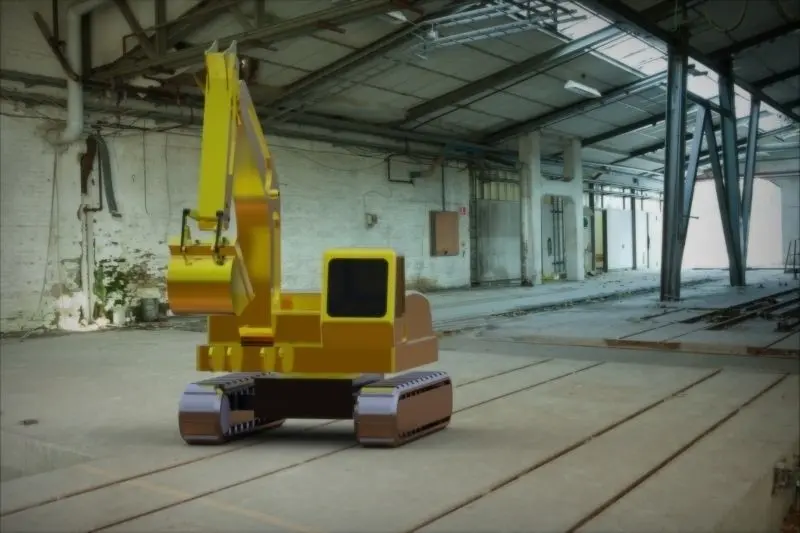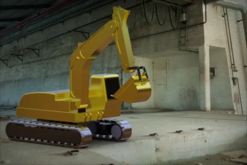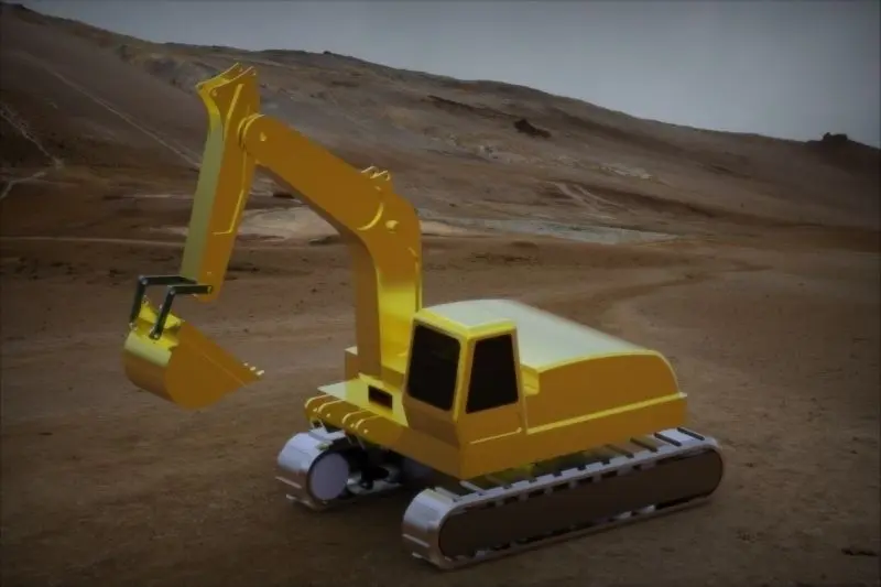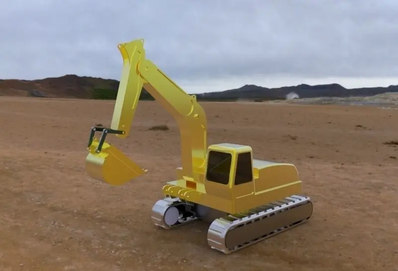 tracks, digger, base arm, bucket arm, bucket, cap, link... (Not finished yet) modeled on CATIA V5, rendered on Keyshot 4