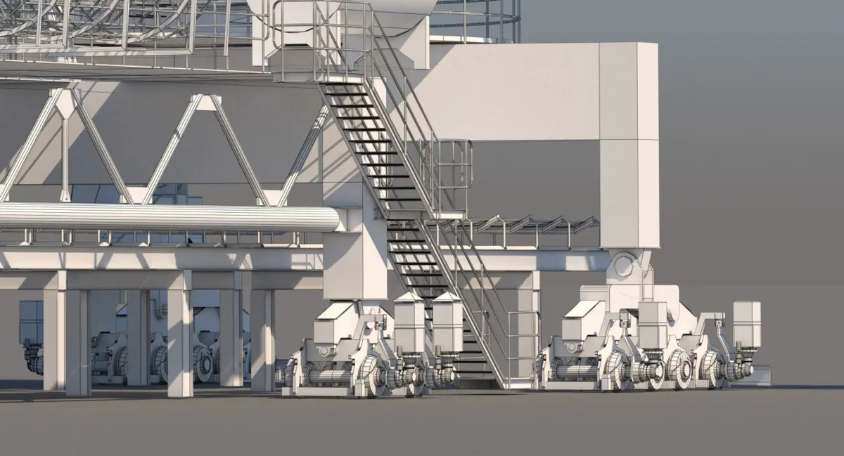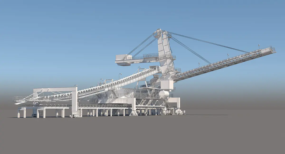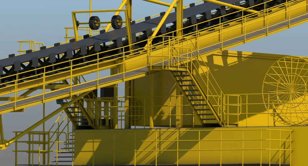 A HIGHLY DETAILED 3D MODEL OF MINING EXCAVATOR CONVEYOR / FEEDER BELT MACHINERY;