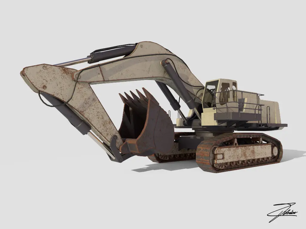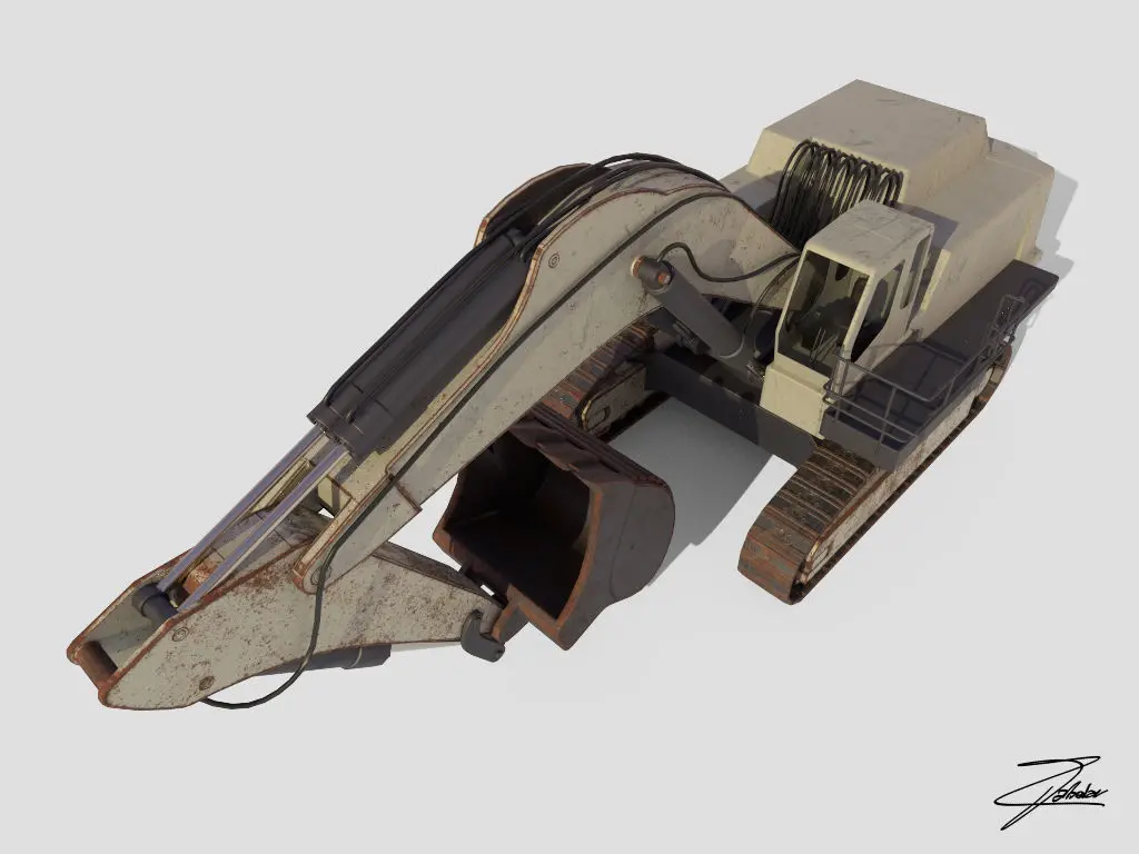 Excavator Liebherr 984 3D lowpoly model. Multiple import formats