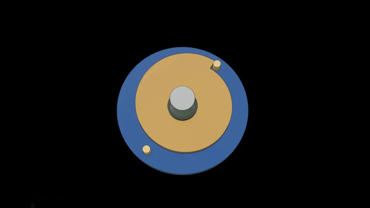 The excentric spiral intermittent mechanism converts continuous rotational motion into precise, intermittent movement. This setup features an eccentric spiral that engages intermittently with a toothed wheel, driving it step-by-step.