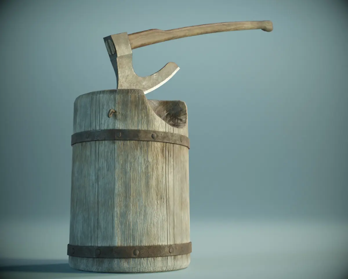 Low-poly PBR Executioner Axe Block models intended for game/realtime/background use.