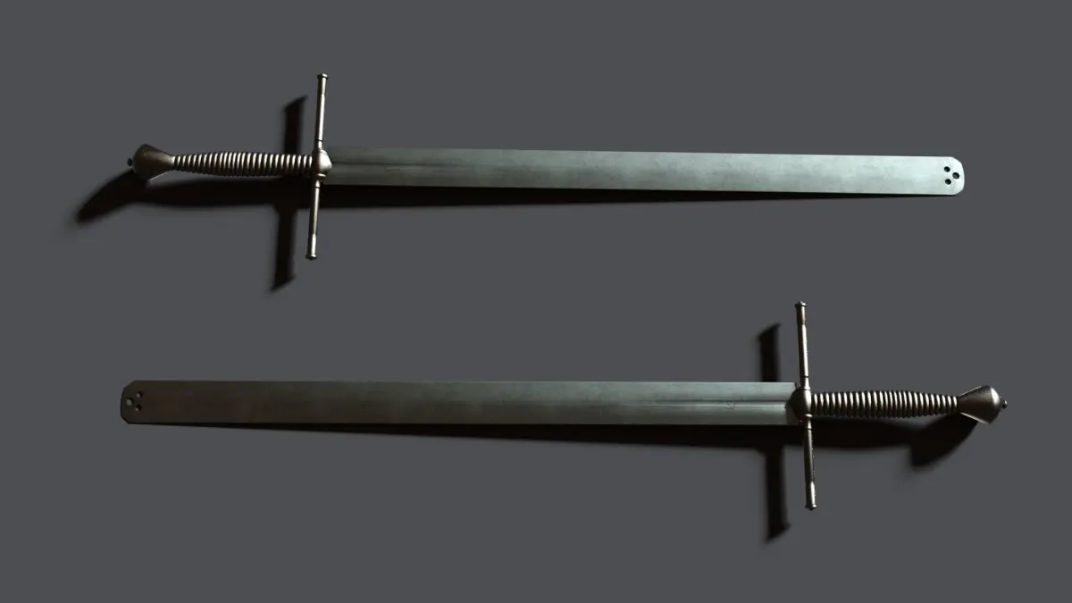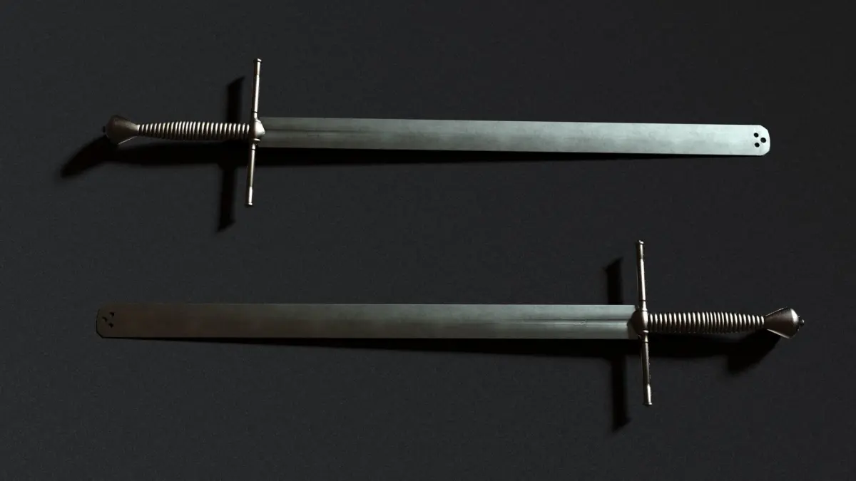 Low-poly historical accurate reconstruction of an German executioner’s sword (Richtschwert / Henkerschwert). The oldest known specialized executioner’s swords date back to the end of the 13th century. They were specifically designed to behead or decapitate criminals. They were two-handed swords with a broad blade. They had no point but rather the front was rounded. Additional holes in the front would prevent people from adding a point to the sword. So it was only intended to cut.