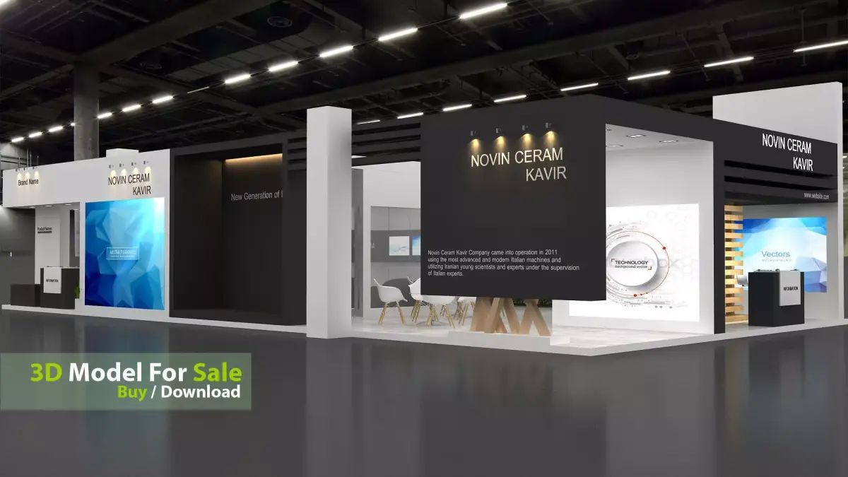 Customizable 3D Exhibition Booth / Trade Show StandSize: 8.5 m X 17mThis professional 3D booth model is designed for exhibitions, trade shows, expos, fairs, and event displays. It is fully editable, optimized, and ready for rendering. Perfect for creating exhibition stands, trade show stalls, expo booths, modular displays, kiosks, and commercial fair setups.