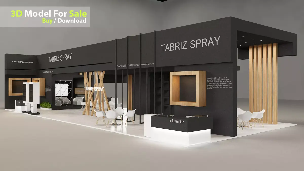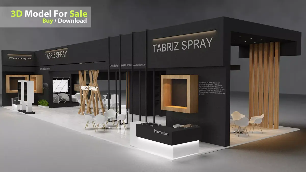 Ready for RenderSize: 8m X 19.5exhibition design include VIP area and Storage and Stand for product include max / FBX / OBJ / 3DS/STL / DAE / Blender/ X3D / STL Renderer: Vray and Corona Include textures of lightboxes Include VIP area and Storage Logical Size and useful