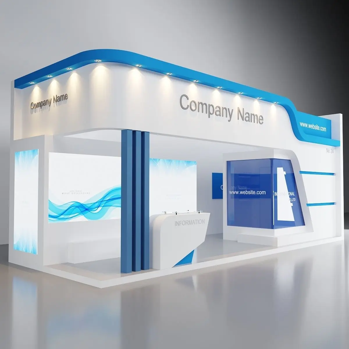 Exhibition ModelUnit: CMSize 800x300cmEngine Renderer: Vray5 And Corona7All the Materials is simple and with Texture.Include Storage Counter Desk and materials such as Glass and metal and....place for meeting room (VIP)