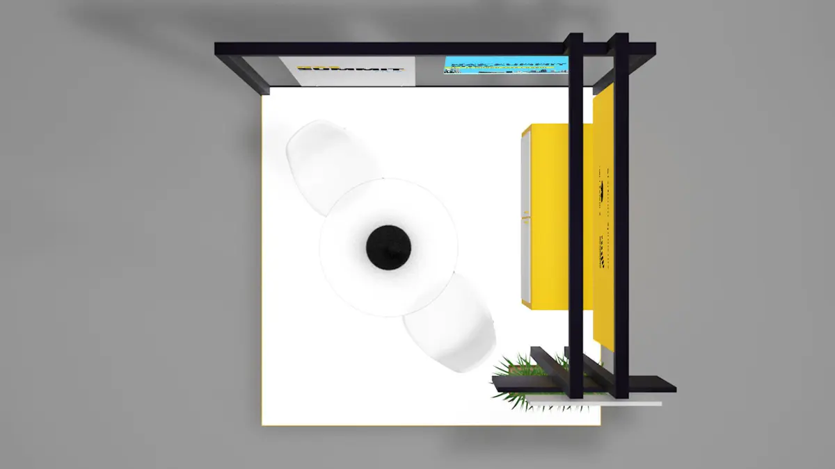 Size - 2.4mX2mX40cm depthMaterial - MDF Structure with brush paint + vinyle Sticker Pasting and carpet flooringItems Includede - High Chairs, Low Chair, Glass Table, TV Unit 45inch, Laptop, Decorative Plants and Storage within the structure