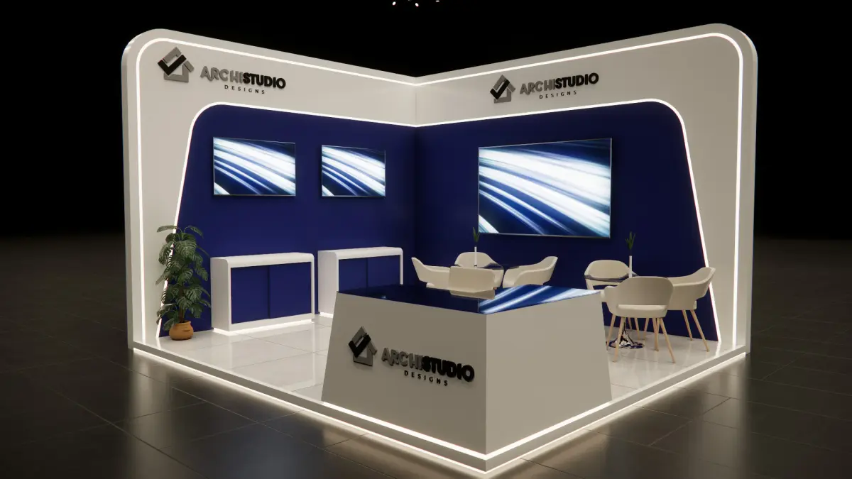 Exhibition booth 3d model ready to render and modeled in real scale dimensions . Ready model for render just place your final edits & branding , several extensions are provided (dae, obj and 3ds).