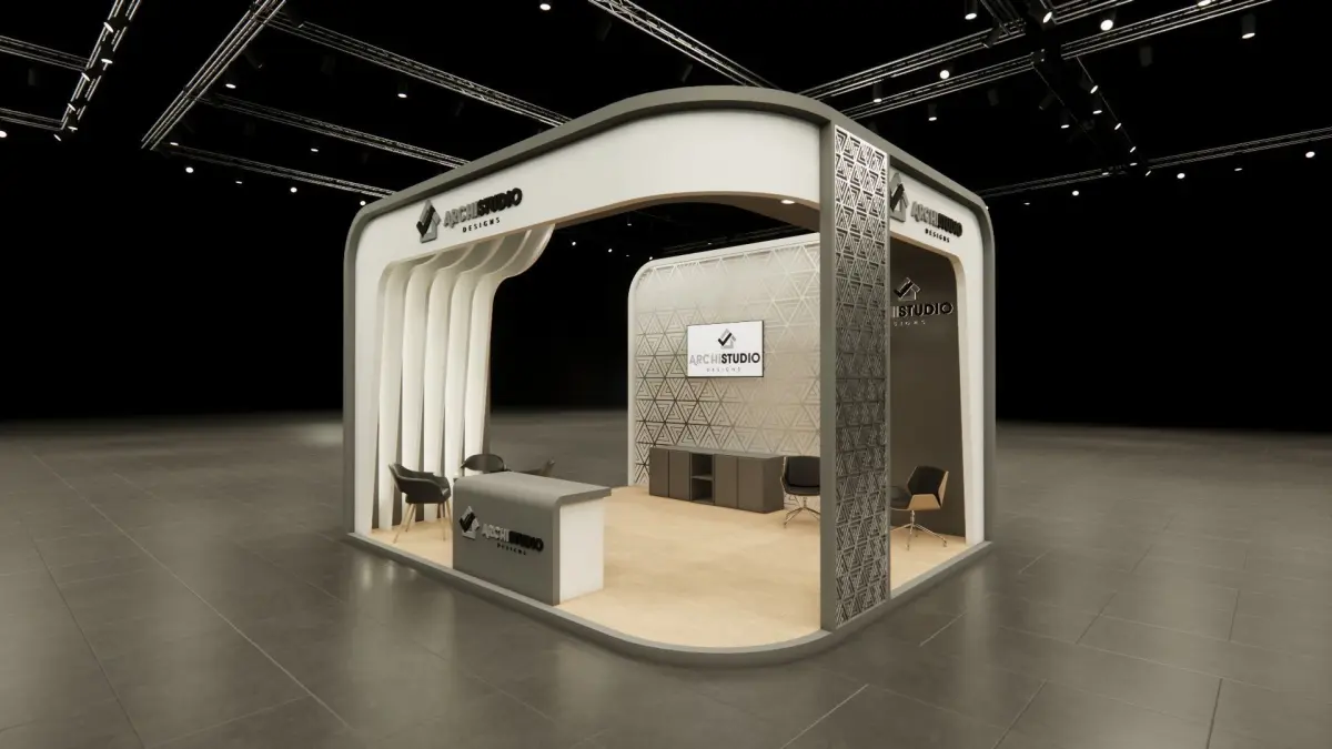 Exhibition booth 3d model ready to render and modeled in real scale dimensions 6m x 5m . Ready model for render just place your final edits & branding , several extensions are provided (dae, fbx and 3ds)