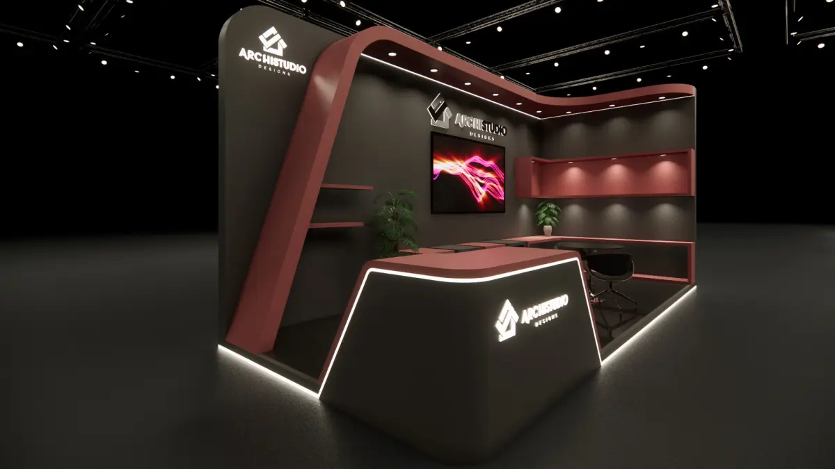 Exhibition booth 3d model ready to render and modeled in real scale dimensions. Ready model for render just place your final edits & branding, several extensions are provided (dae, obj and 3ds).