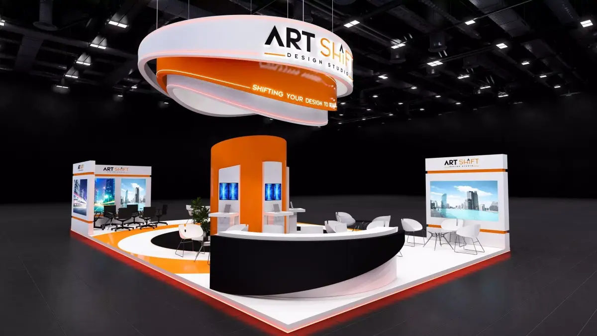 - Exhibition booth stand 14 x 8m.