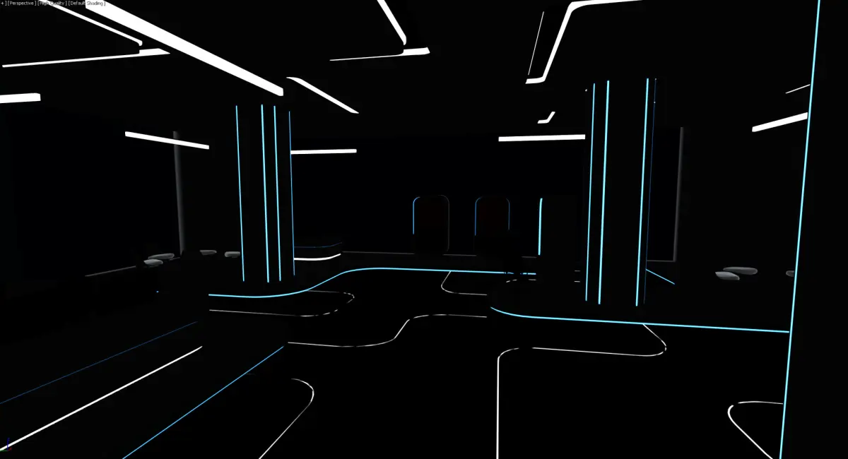Default texture or material applied for modifications, No lighting, Illuminates (neon) light shapes created.