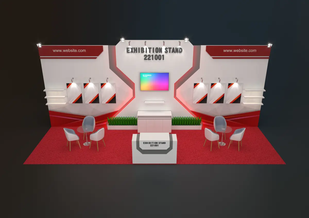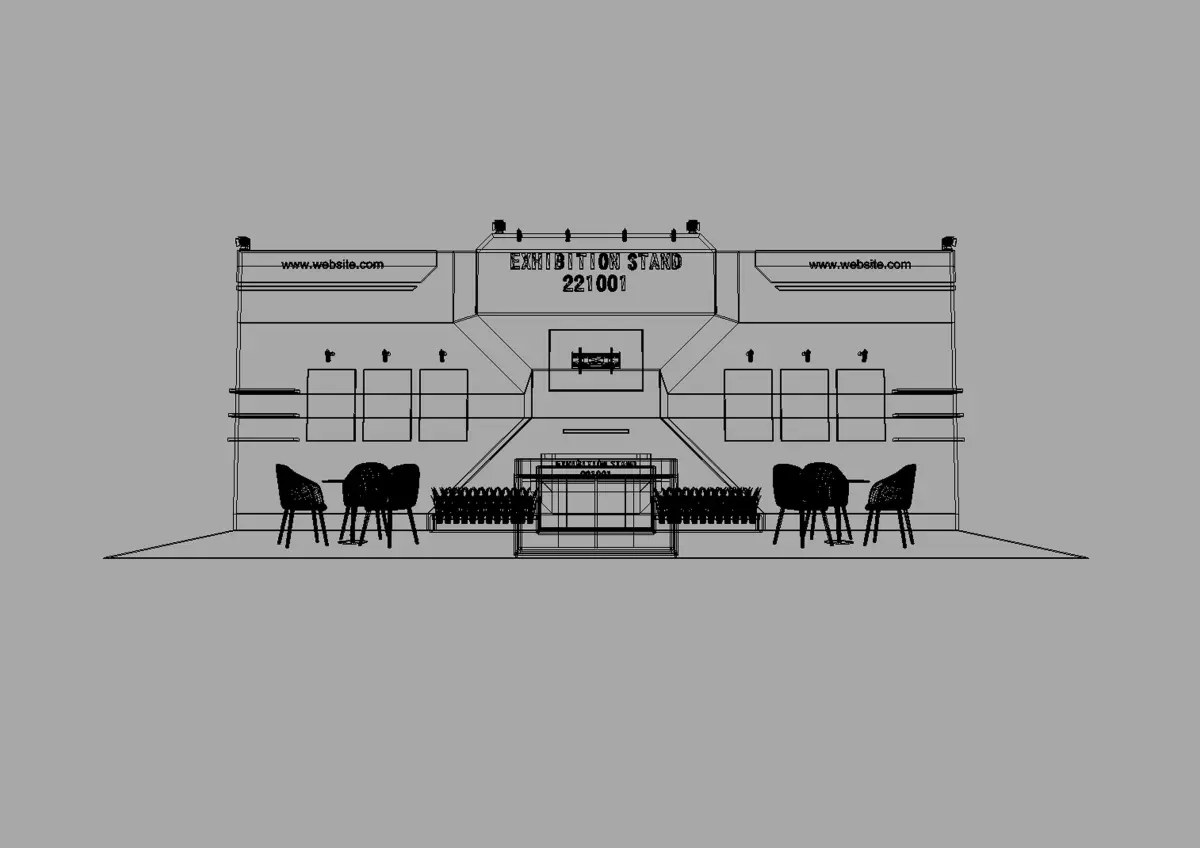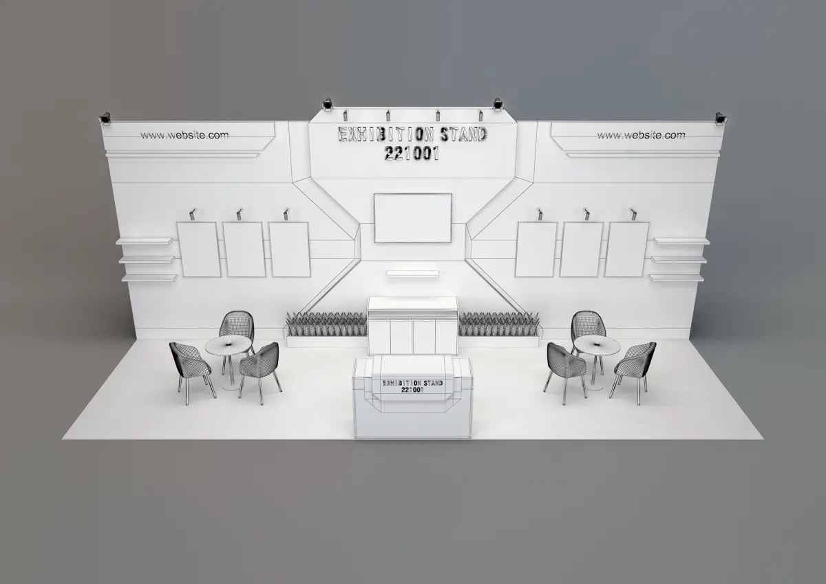 27 sqm / 9x3m - 3 exposed sides booth layout