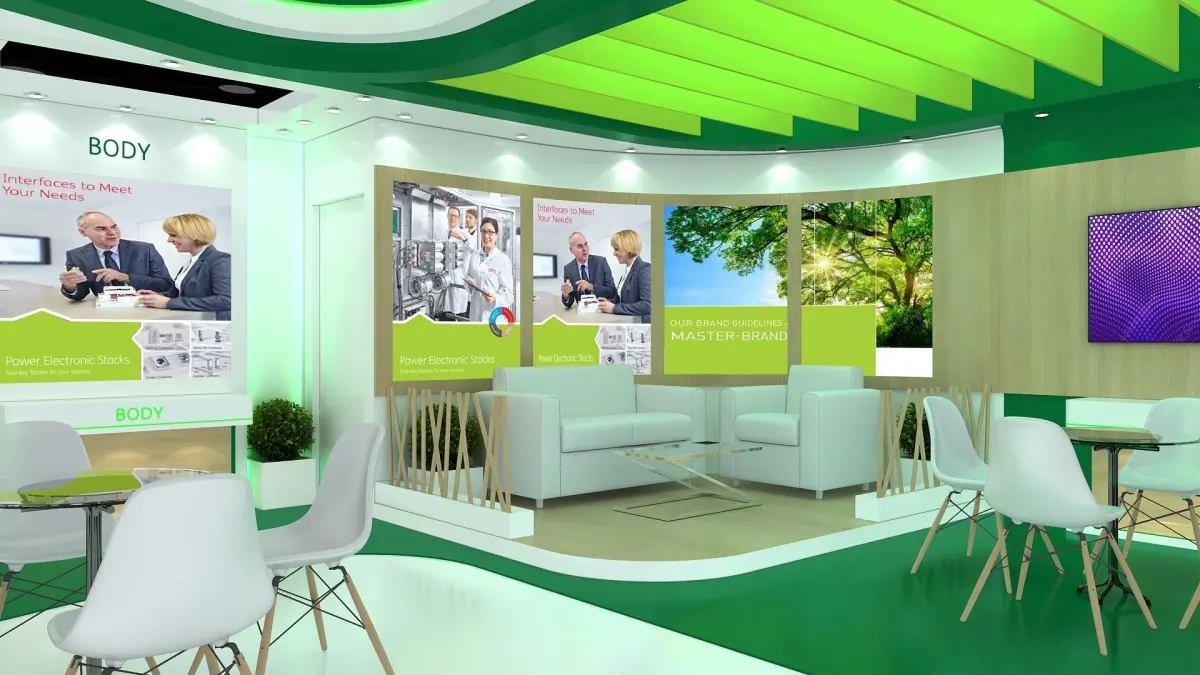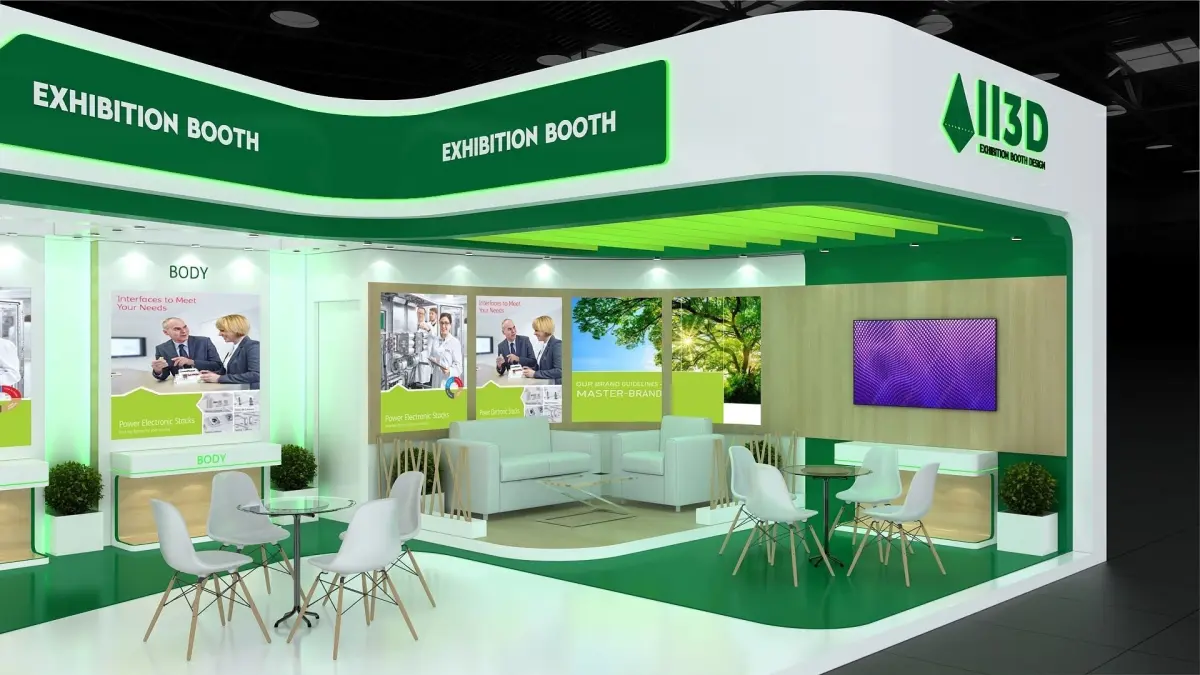 - Basic furniture is used in the booth, following CGtrader guidelines. You can incorporate creative and decorative furniture to enhance the scene's output