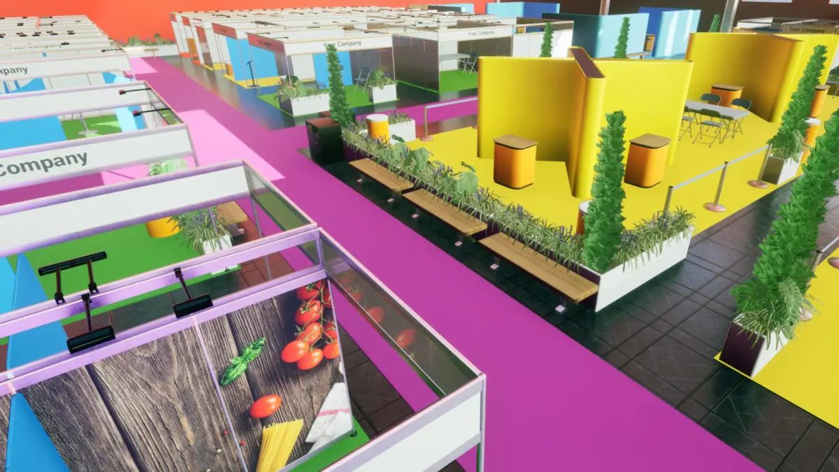 Exhibition assets for unreal engine are a selection of shell schemes, tables, chairs, plants and more that can be used for many purposes for example, To layout floor plans for exhibitions, fashion shows & conferences
