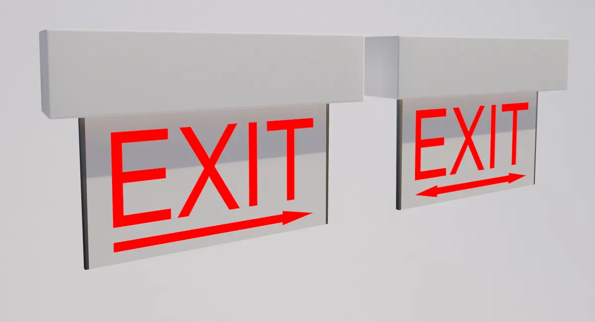 3 Models included: -1 Sign with EXIT and Arrow to the Right Direction. Polygons: 1,154, Vertices: 2,040-1 Sign with EXIT and Arrow to the Left Direction. Polygons: 1,158, Vertices: 2,045-1 Sign with EXIT and Arrow pointing to Left and right Direction. Polygons: 1,160, Vertices: 2,052