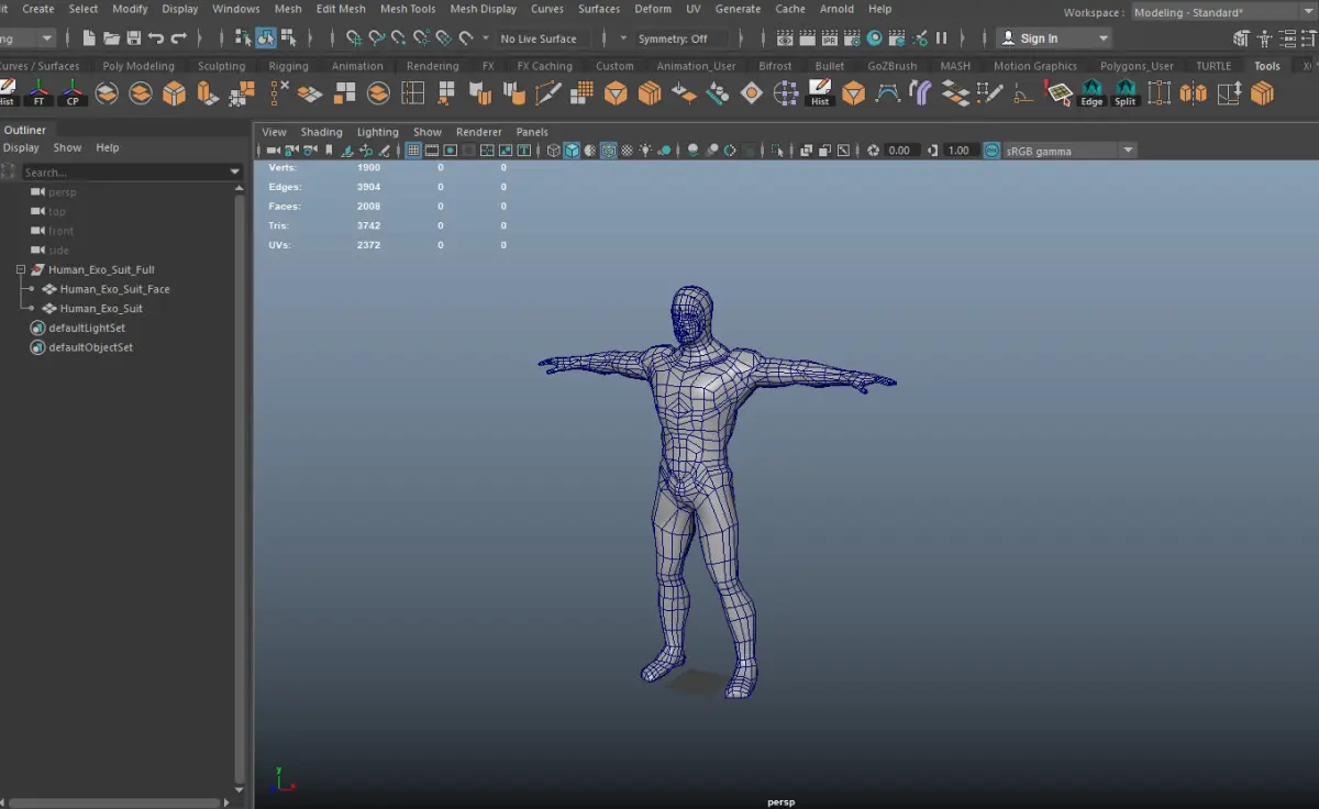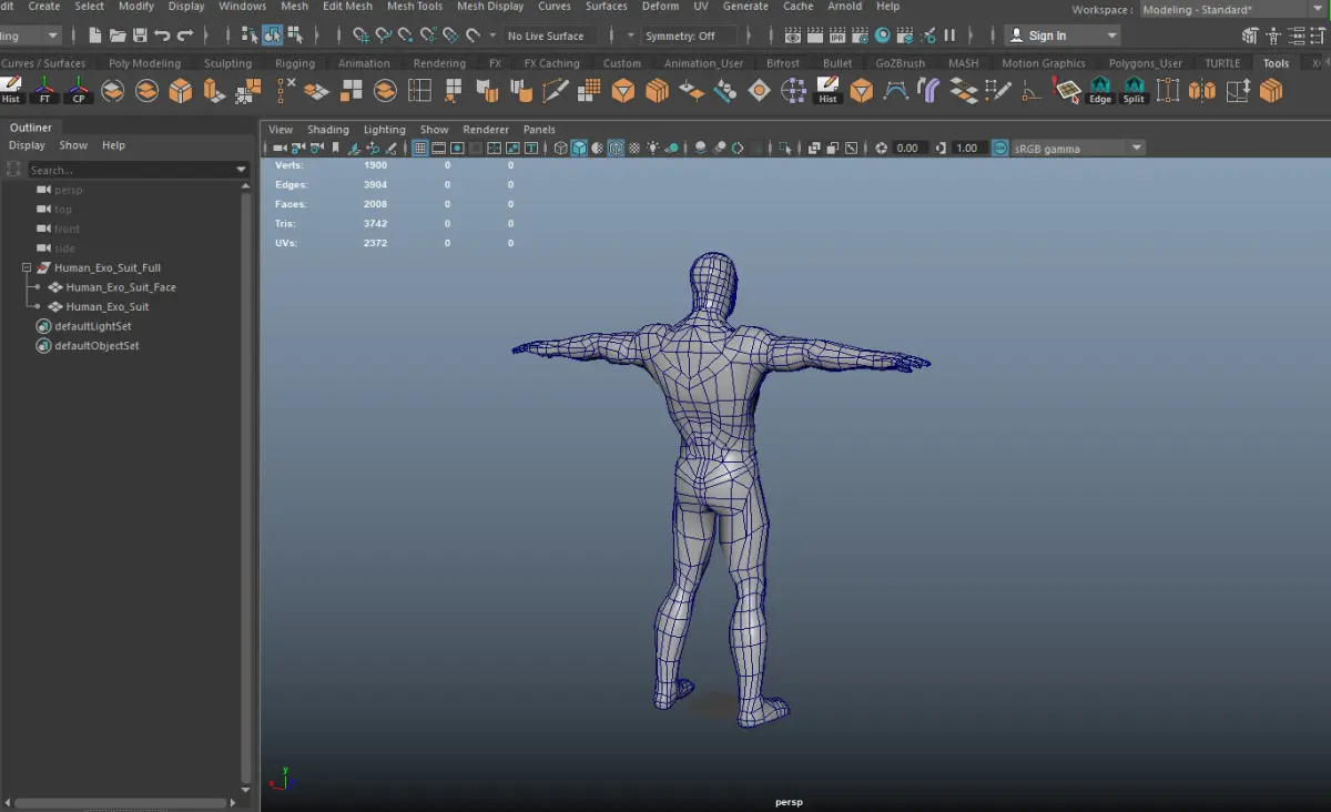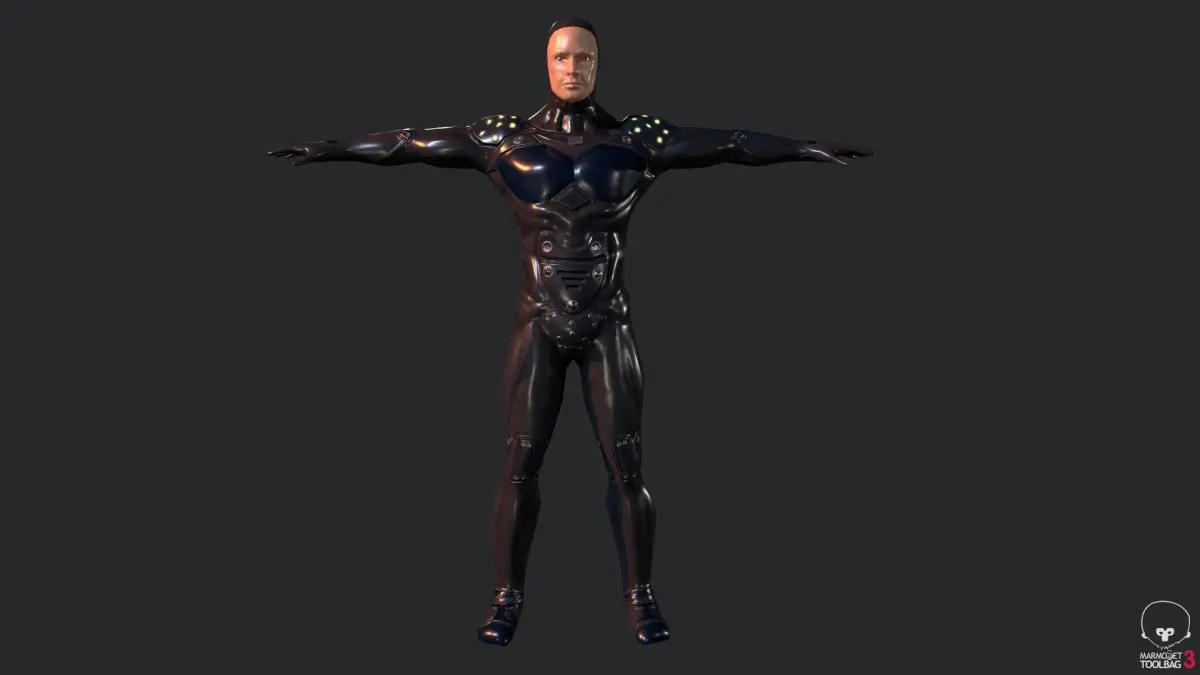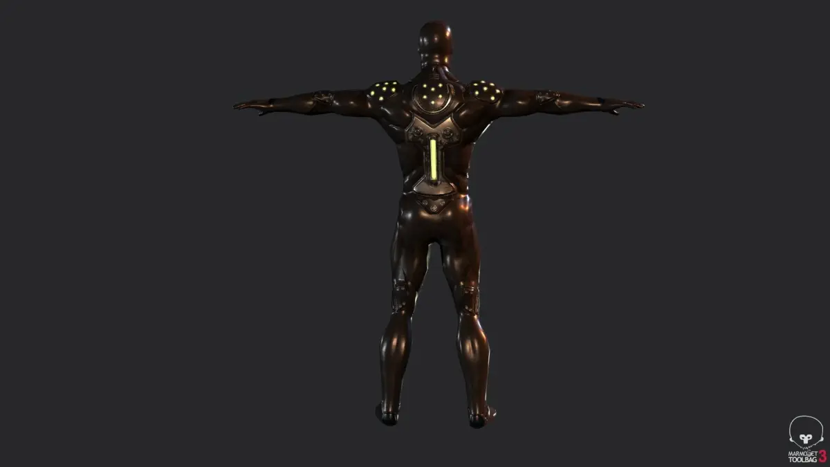 A Exo Suit Armor ready for a video game engine has 1900 verts 2008 polys and 3742 tris has two materials one for the armor and one for the face the face has the diffuse, metal and normal maps the size is 2048 x 2048 and the armor is 4096 x 4096 and has diffuse, emissive, metal and normal map.