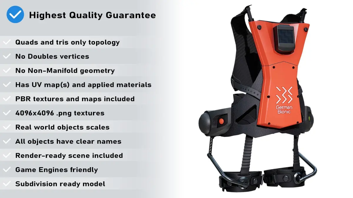 High quality low poly game and render ready model of the Exoskeleton German Bionic Cray-X Red PBR. Ready for realtime scenes and game engines;