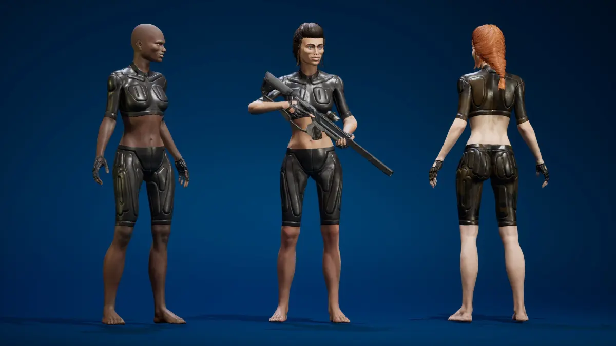The ExoSoldiers models contains 6 skins, 30 materials, 194 PBR textures 4096x4096, 61 animations, blendshapes, EpicSkeleton 5 + extra bones: joint_weapone-joint_weapone1. joint_Hair1-joint_Hair2-joint_Hair3-joint_Hair4-joint_Hair5-joint_Hair6.