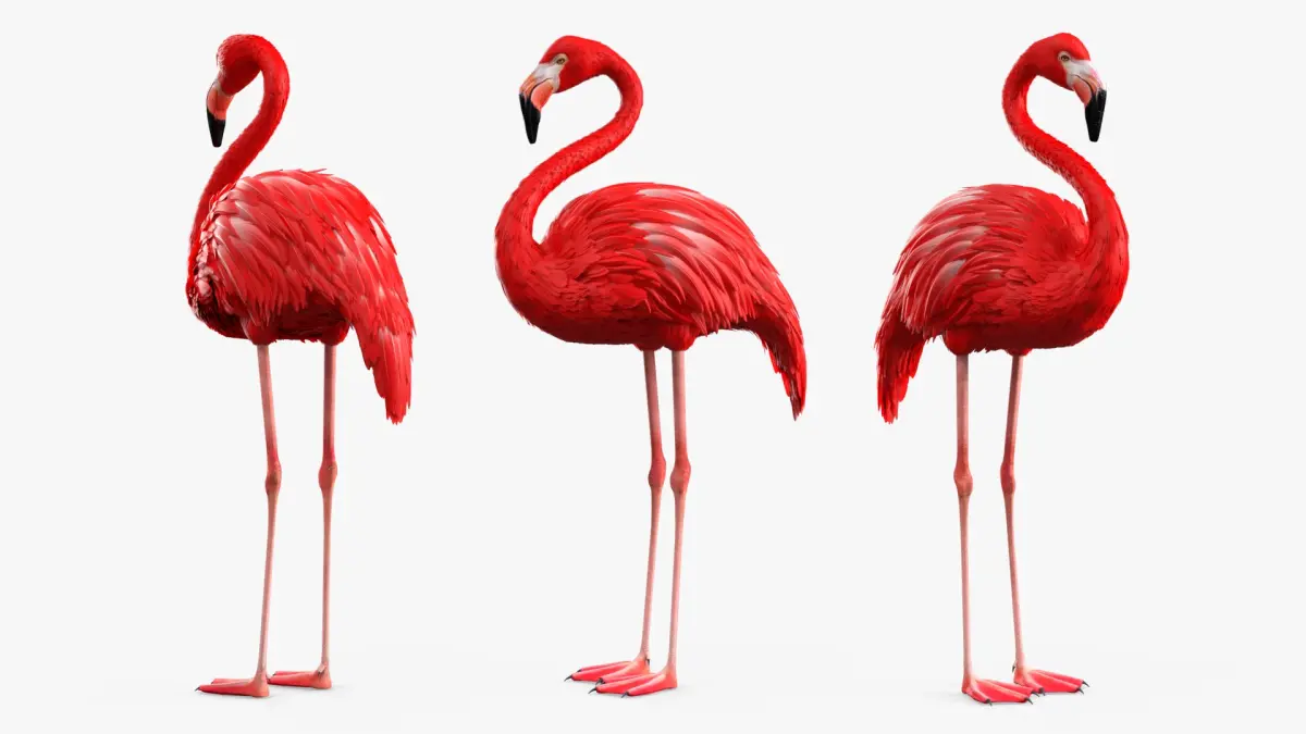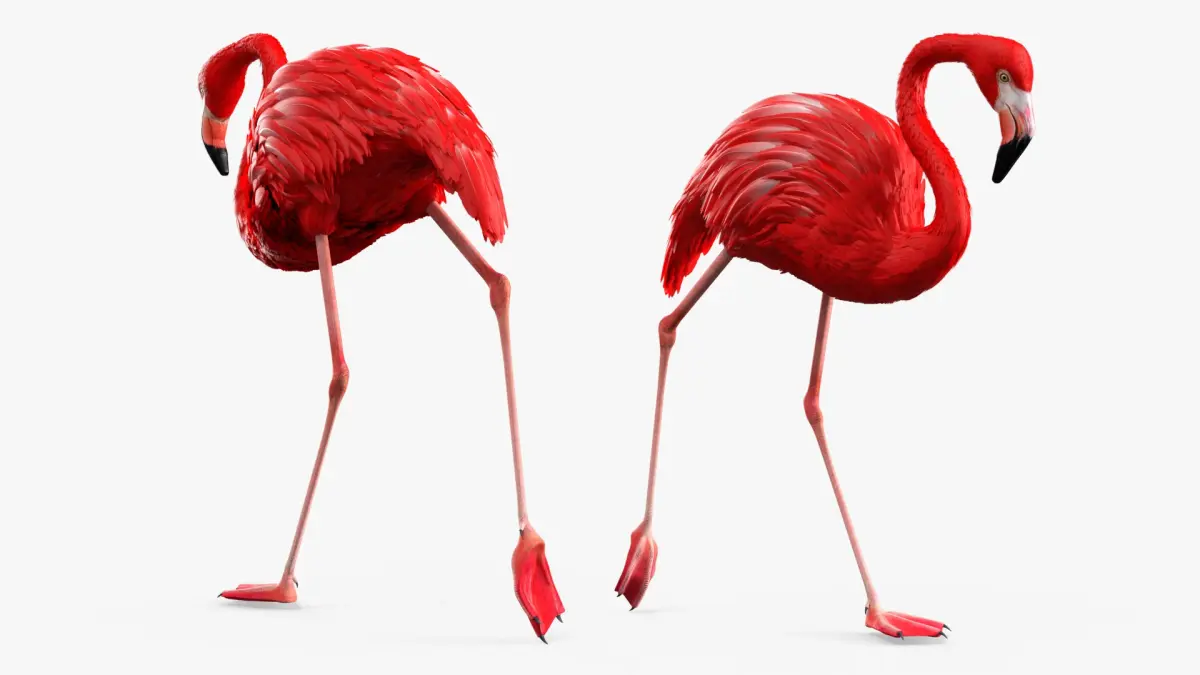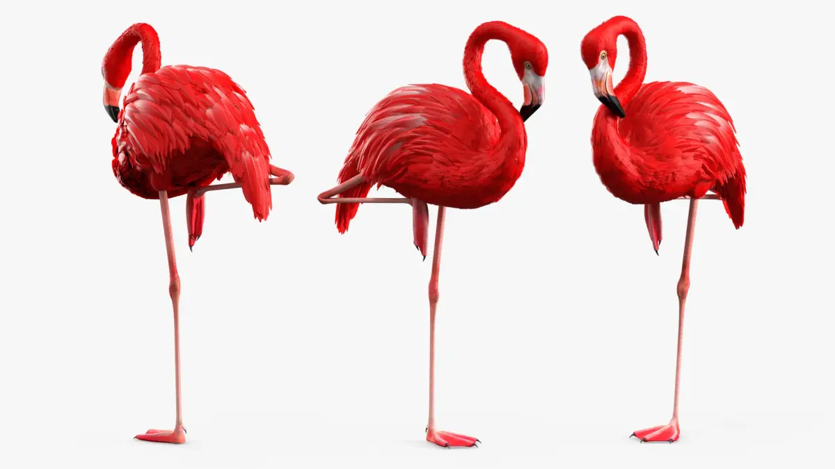 Exotic Bird Red Flamingo Rigged for Cinema 4D is a three-dimensional model of large wading bird, that is a distinctive species recognized for its pink plumage and long legs.