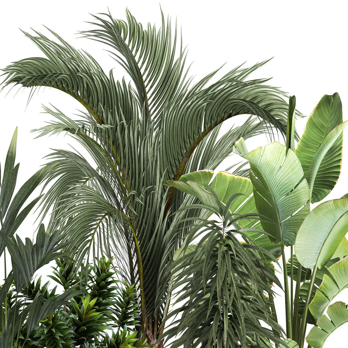 Home Catalog exotic plants in a metal flowerpot for the interior 1110 3D model
