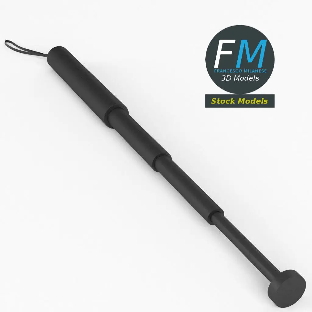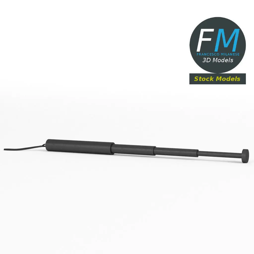 Expandable baton 3D Model. 2 individual objects (baton, string; so, you can edit or remove the string, if you want) sharing the same non overlapping UV Layout map, Material and PBR Textures set. Production-ready 3D Model, with PBR materials, textures, non overlapping UV Layout map provided in the package.