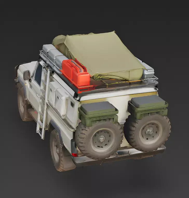 Asset BreakdownThis 3D asset represents the ultimate off-road survival vehicle, designed for long-distance wilderness exploration and rugged terrain. It balances utilitarian function with high-detail adventure gear.