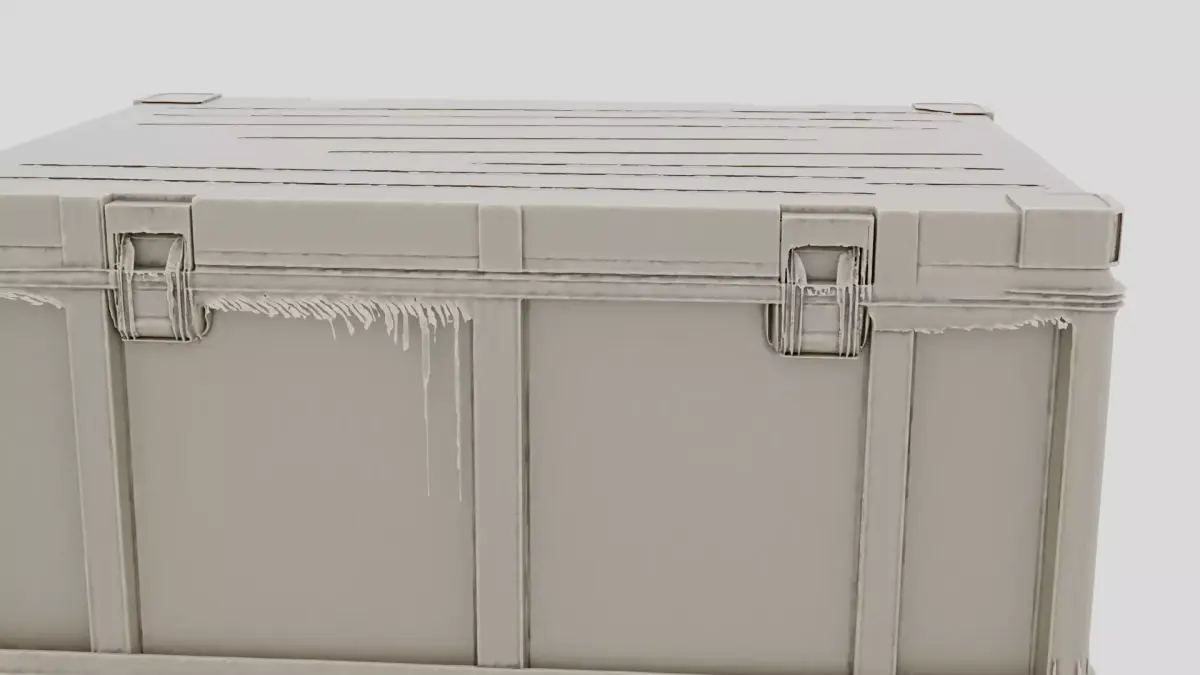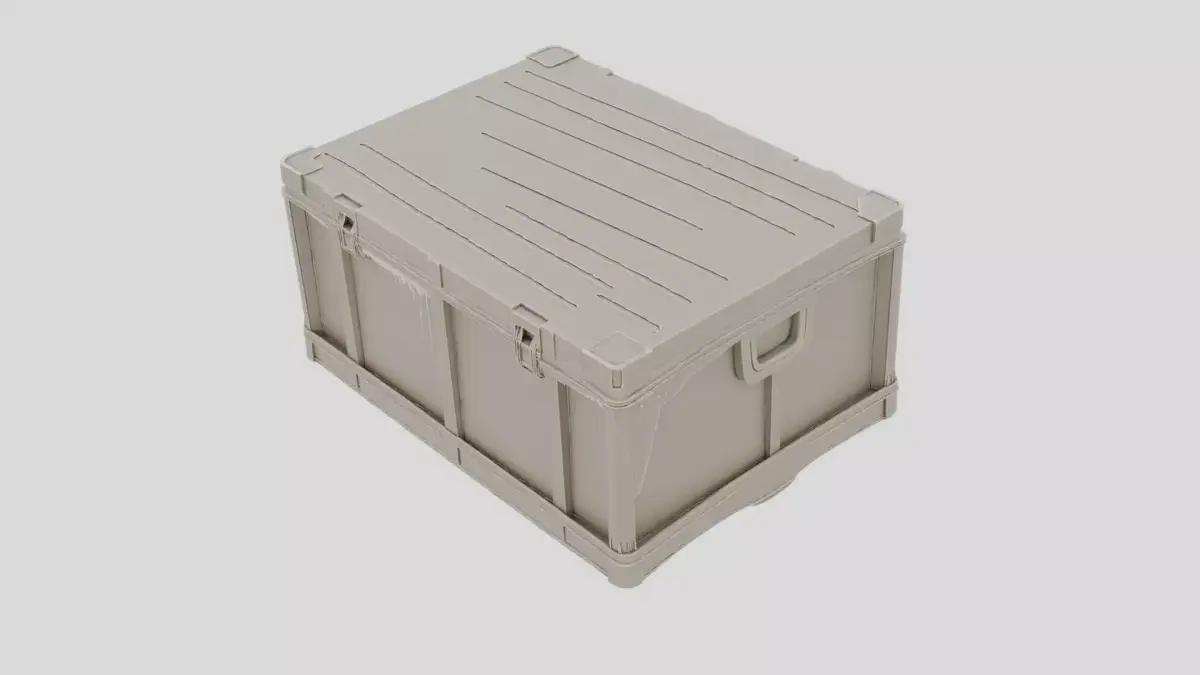 This 3D model depicts a heavy duty storage crate designed for transporting experimental scientific equipment. The crate features reinforced panels, locking bar shapes, and solid corner supports, all modeled as a single durable geometry. The design avoids logos, text, or markings and contains no textures. There is no rigging or animation. Thin edges are avoided to improve print success. The proportions are generic and suitable for secret lab scenes, military science environments, or mysterious research facilities. The smooth surfaces support easy sanding, priming, and painting. The model is static, untextured, and fully ready for 3D print.