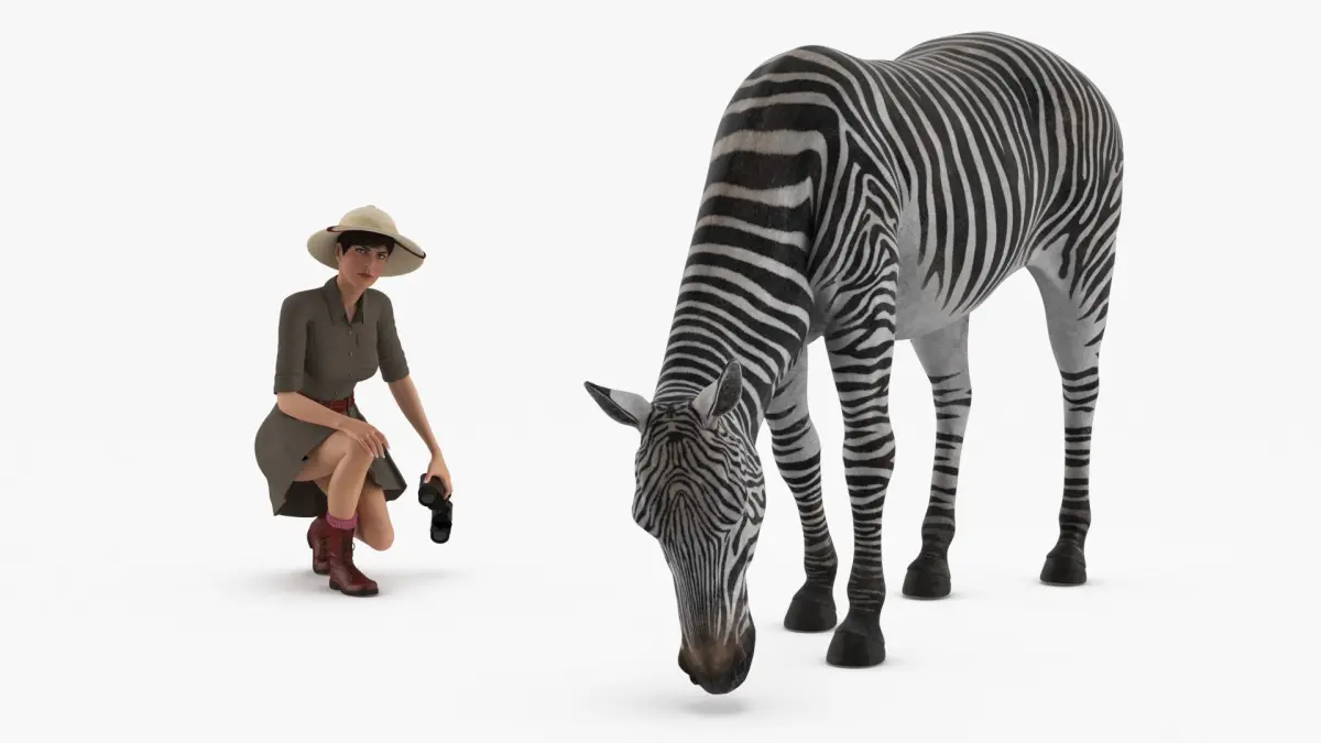 Explorer and Zebra is a high quality, photo real 3d model that will enhance detail and realism to any of your rendering projects. The model has a fully textured, detailed design that allows for close-up renders, and was originally modeled in 3ds Max 2020 and rendered with V-Ray. Renders have no postprocessing!