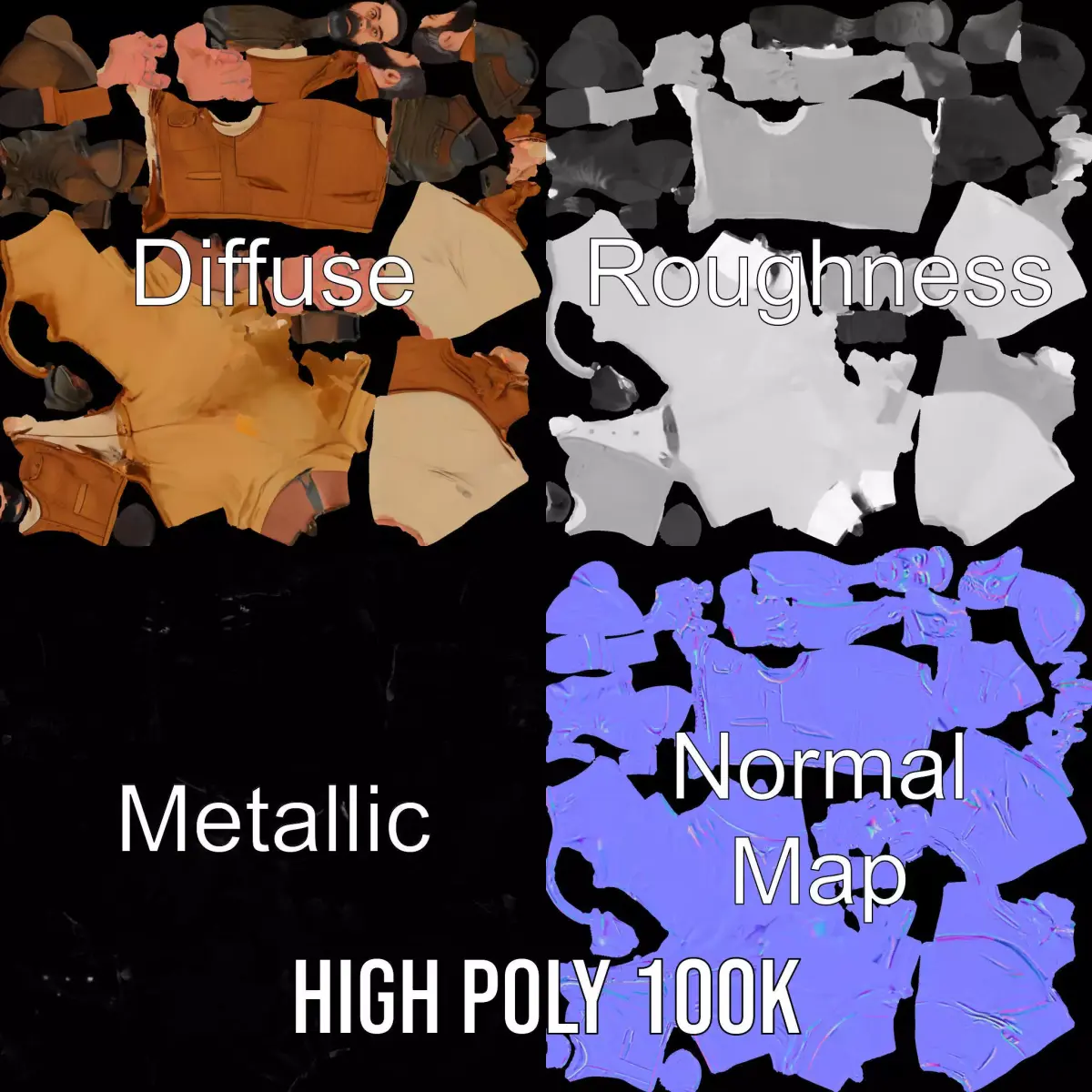 The Explorer Outfit Character Model Pack offers a detailed 3D representation of an adventurous, rugged character suitable for various digital environments. Each model has 3 levels of detail: low-poly (1000 triangles for mobile), middle-poly (10,000 triangles for environment), and high-poly (100,000 triangles), which allows for use in production rendering (such as 3ds Max, Maya, Cinema4D, Blender, Vray/Corona/Cycles and all others), game engines (Unity and Unreal compatible), and interactive presentations, providing a choice of detail based on the LOD System principle. Ideal for adventure games, animation projects, or virtual reality experiences, this model provides versatility and high-quality detail. The model's textures are PBR, Diffuse, NormalMap, and reflection/roughness/metallic, suitable for any modern rendering engine. All models are accurately unwrapped with no overlapping UVs. Textures are 4096x4096 in size. The first image is the reference used for creating the 3D model. It's important to carefully evaluate the quality of the model by examining preview images displaying topology and polygonal mesh. These previews (WIRE and WEB 3D Preview) clearly demonstrate how accurately the model matches the original reference and how well the geometry has been executed. Please like and leave a comment for the model if you enjoyed it.