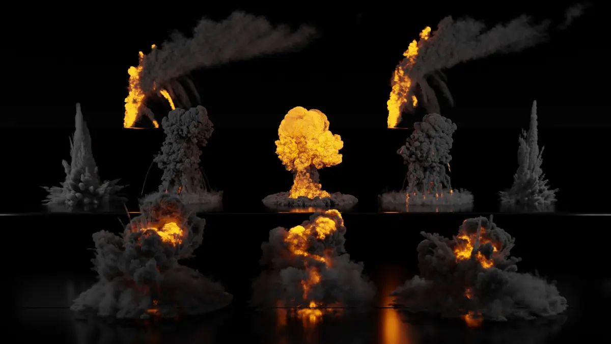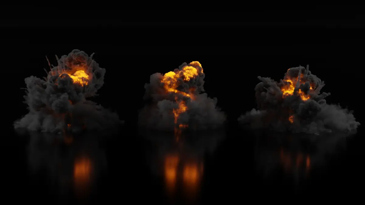 The VDB files are easy to import into most modern 3D-Software. The density and color of the smoke are also changeable in most 3D-Software. The VDBs contain: -Density -Temperature -Fuel -FlamesAll of the VDBs are 1 Frame Models.The Render Set is in .obj and .fdx and the Explosion in .vdb