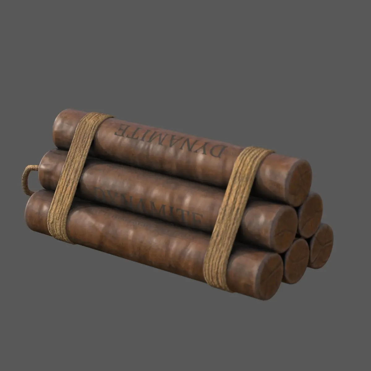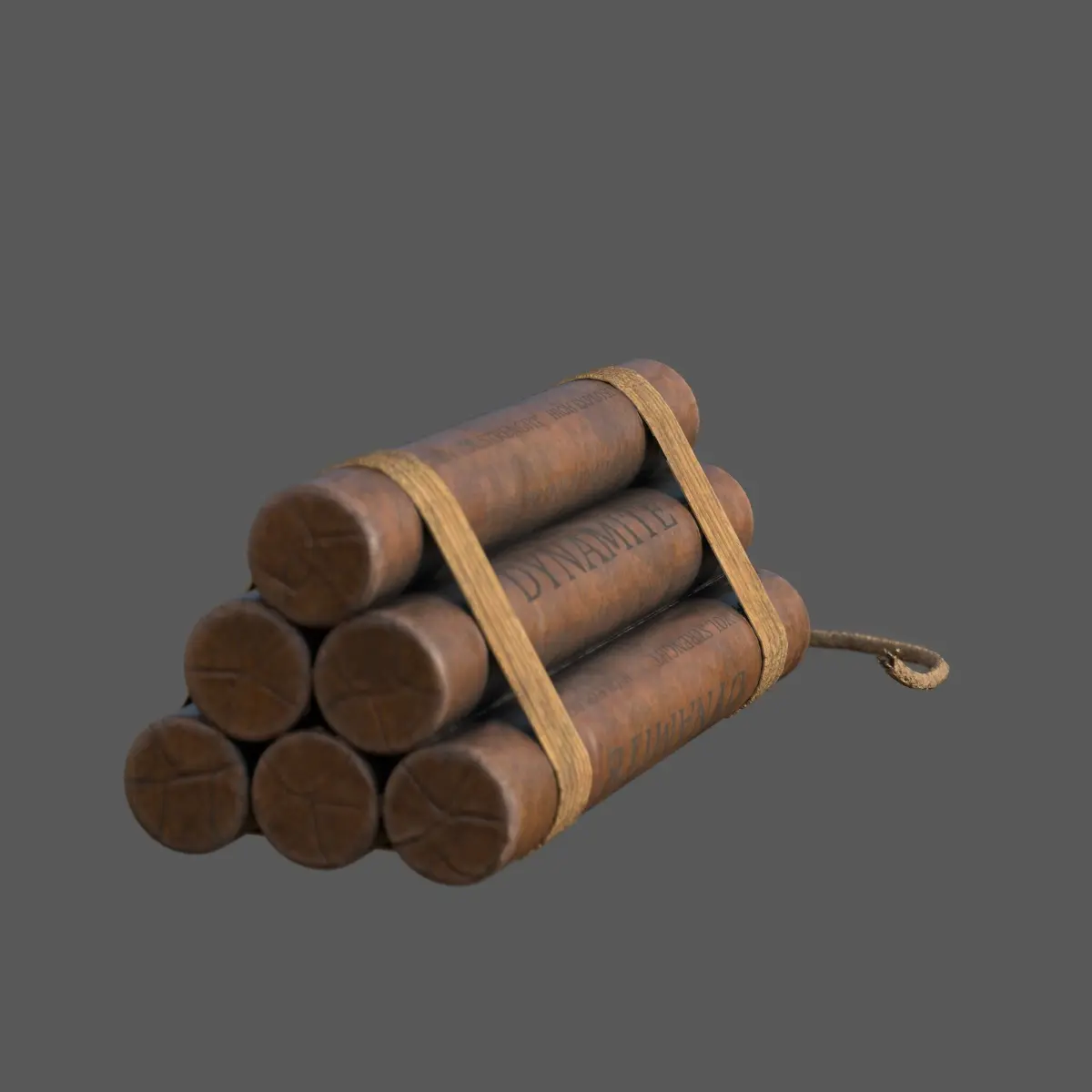 This realistic low poly explosive charge is a high-quality 3D model of a traditional TNT dynamite bundle, featuring worn paper textures, rope wraps, and a physical fuse. Ideal for** first-person shooters, survival** games, or cinematic environments, it brings an authentic and dangerous edge to any scene.
