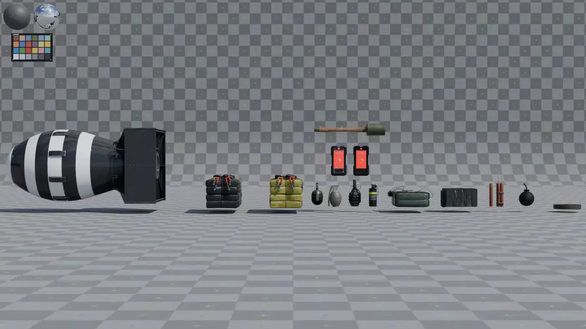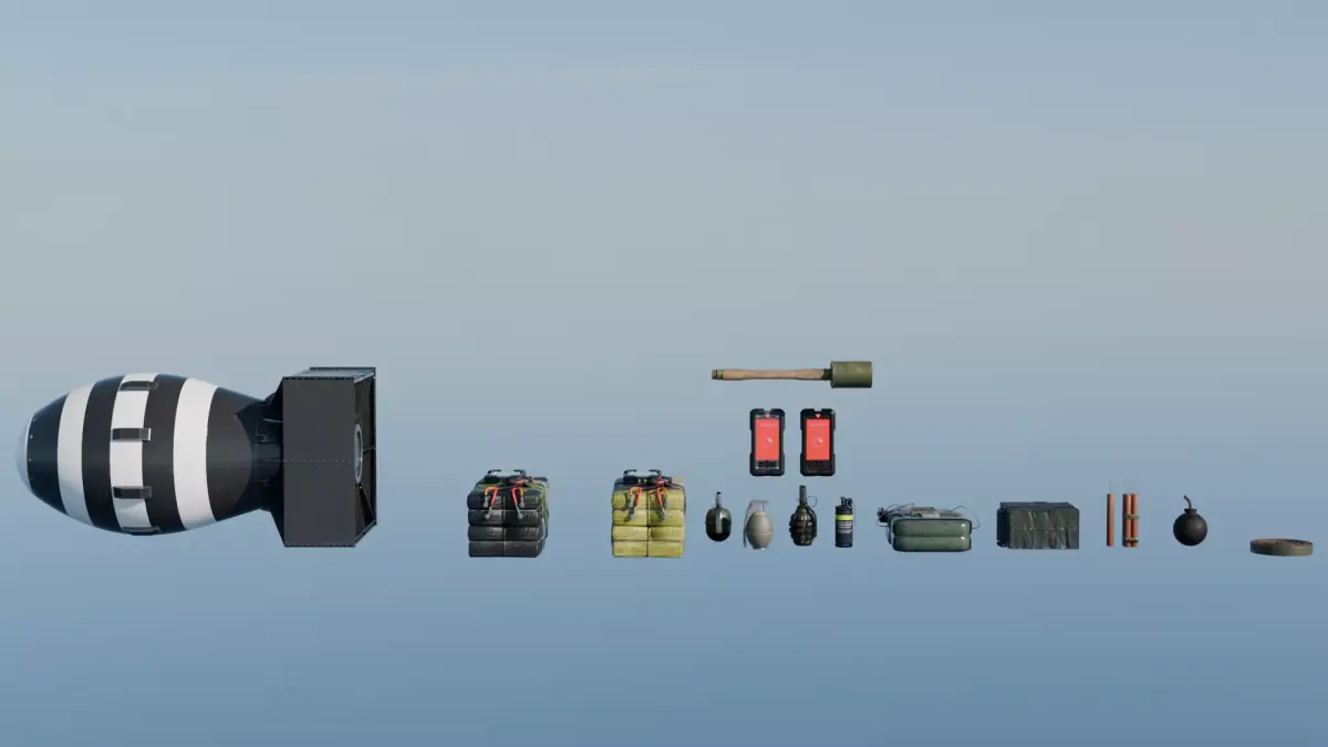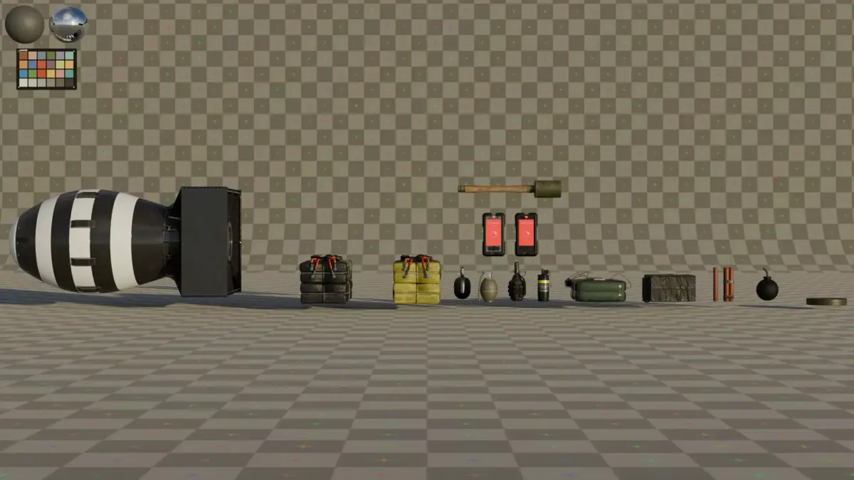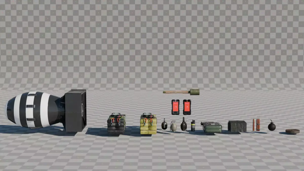 The Explosives, Bomb, and Munitions Asset Pack High QualityThis pack includes C4, detonators, bombs with wick, tnt, dynamite, atomic bomb, land mines, grenades, concussion grenades, and explosives.The asset is high fidelity making it both game-ready & cinematic ready.The asset is also 3D printable by simply importing the file and exporting it as a .stl and adding it to the slicer of your choice.UV mapping..fbx, .obj, .blend files availableTexture files provided.