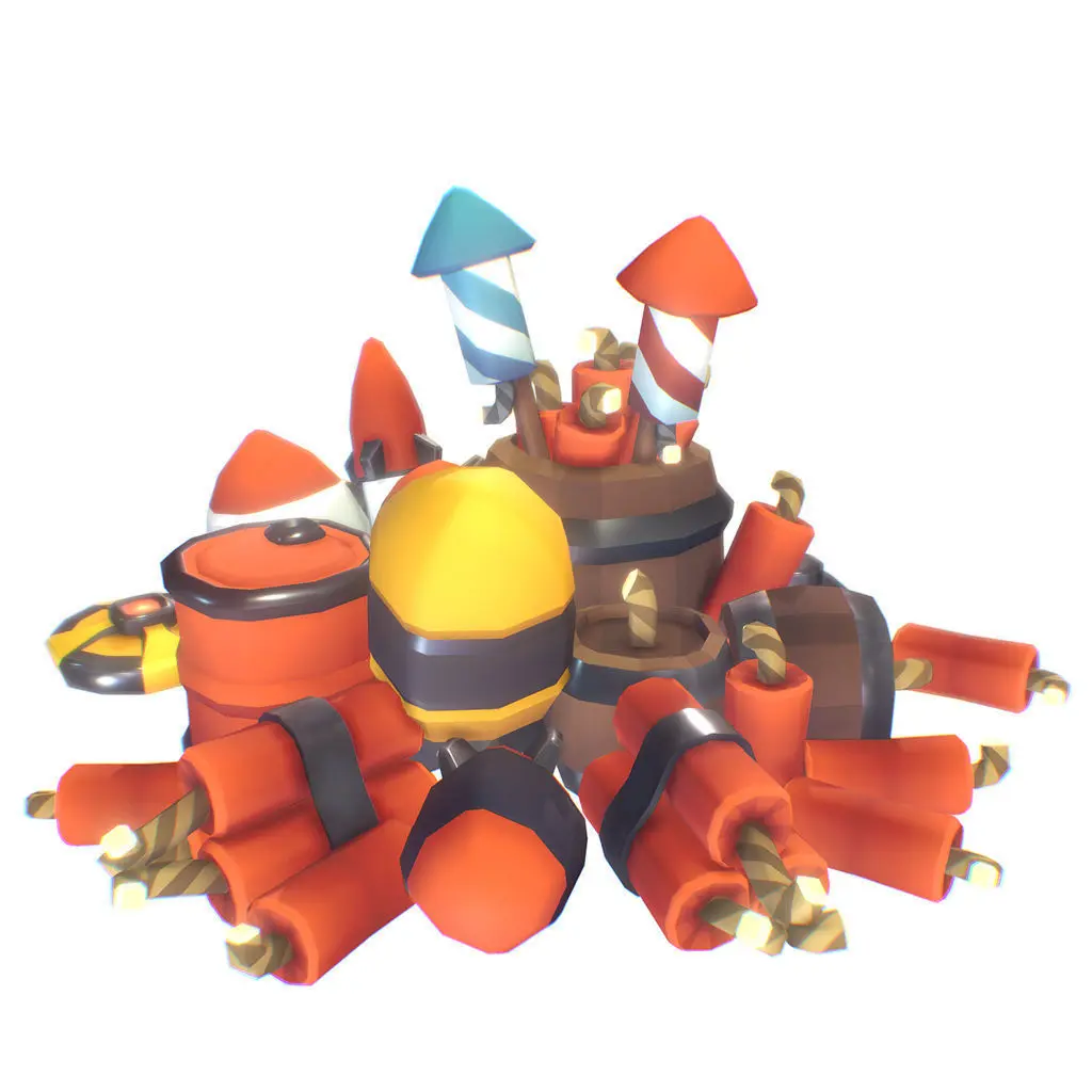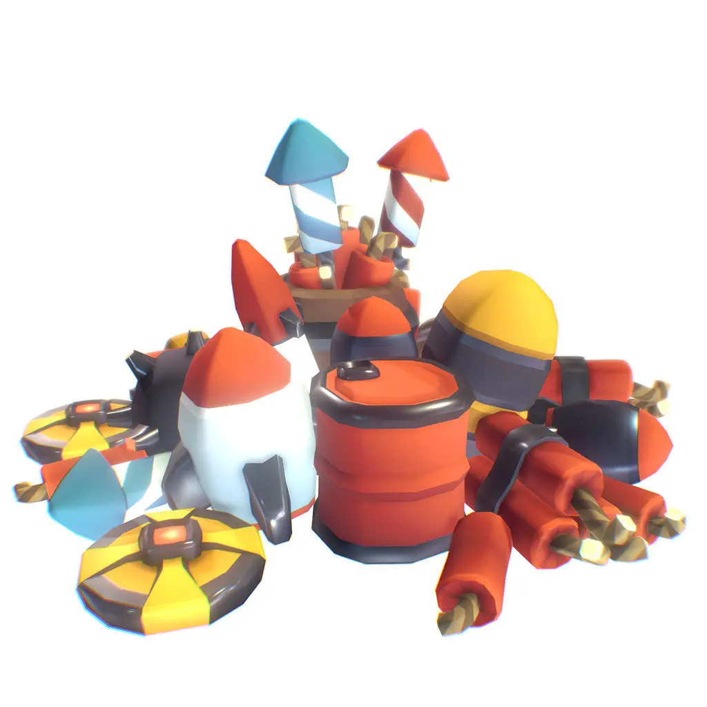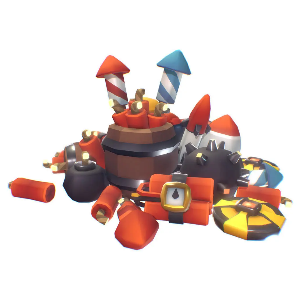 A barrel of quirky, cartoony, explosive fun! Blow up stuff with the Smashy Craft explosives set. Included are a land and water mine, TNT sticks, a gunpowder barrel bomb, new years rockets, an atomic bomb and a plane bomb and more.