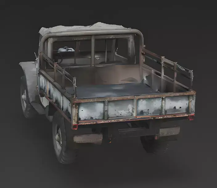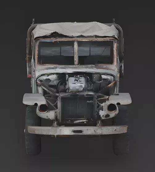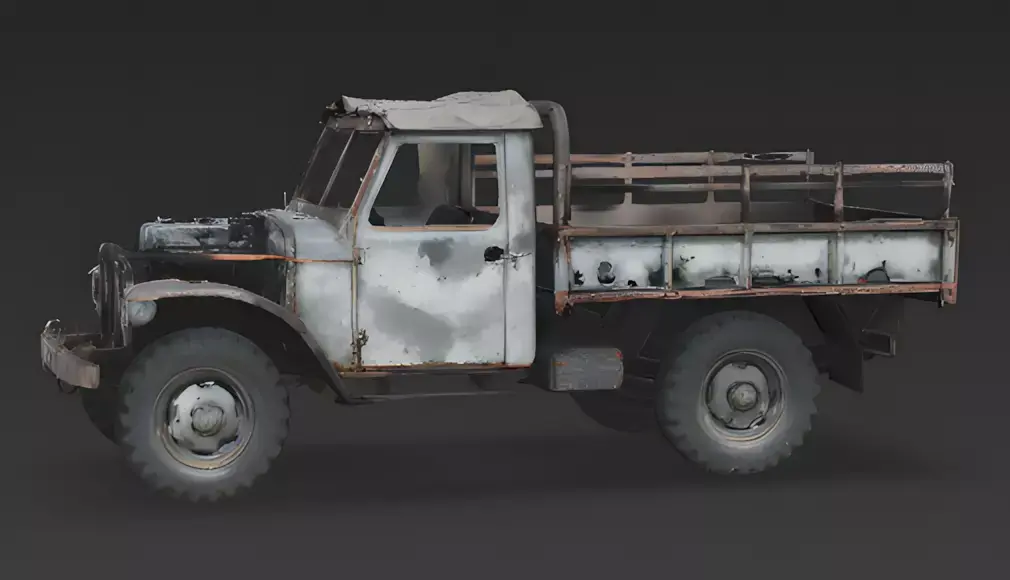 Asymmetric Wear & Tear The model features realistic randomized damage, such as a missing headlight, a detached front bumper, and panels with varying levels of corrosion. This lack of symmetry makes the asset feel more like a unique piece of history rather than a repeated 3D object.