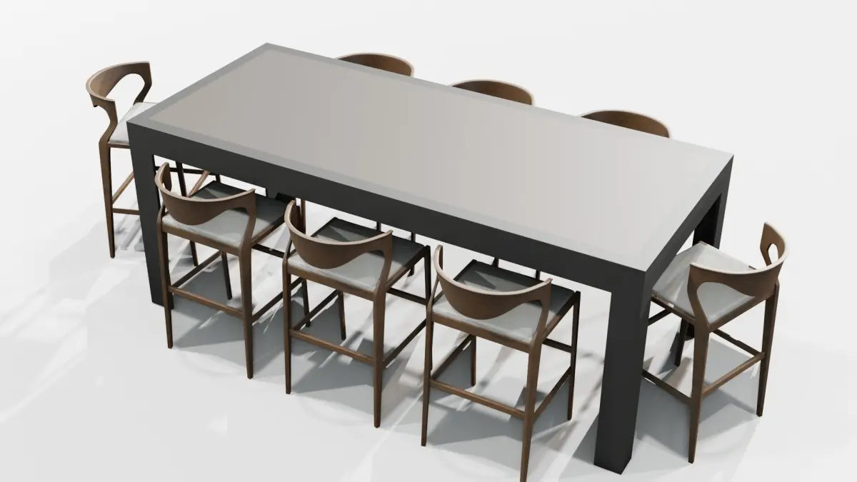 Transform your dining area with an exquisite indoor or outdoor dining table accompanied by its charming chairs. Whether you envision a cozy family gathering or an elegant dinner party under the stars, this set offers the perfect balance of sophistication and functionality. The table's impeccable details and the chairs' comfortable seating will undoubtedly impress your virtual guests.