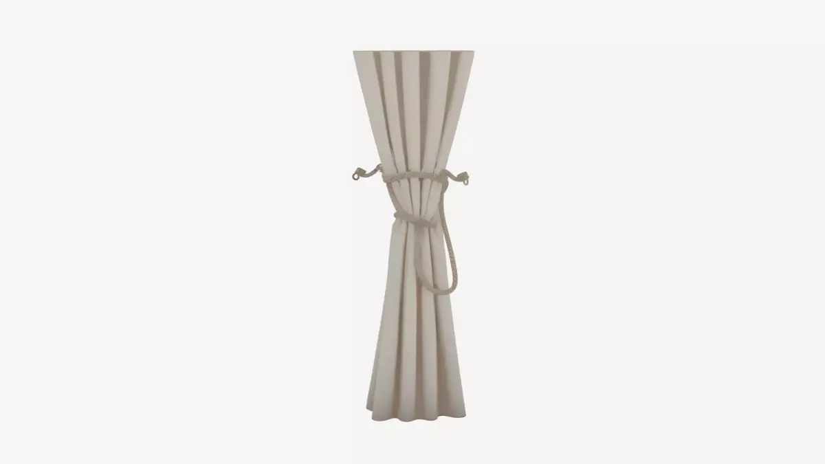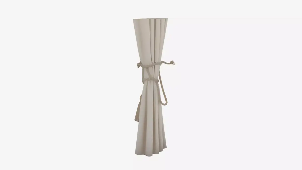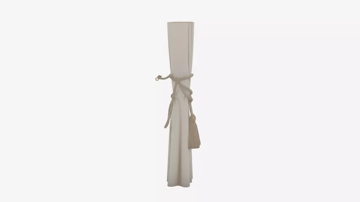 Elegant white silk curtain tiebacks featuring intricate tassel ghosts with delicate fringe, a beautifully twisted cord wrap, and gracefully curved hook ends. This detailed 3D model includes four comprehensive views: the front showcasing the flowing tassel dangles, the back revealing the artistic cord twist, the left side highlighting the ghost shape, and the right side displaying the elegant hook curve. Perfect for adding sophisticated window treatments to your animated films or game environments.