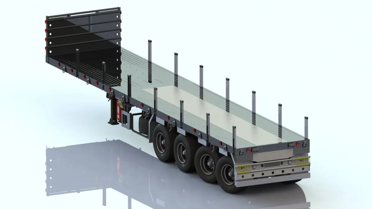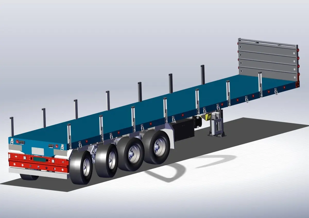 High detailed 3D model of 2023 Dump Trailer. Real-size dimensions. The product can be manufactured. Sheet metal expansions are available in the file. It complies with traffic standards. Designed in SolidWorks 2023.