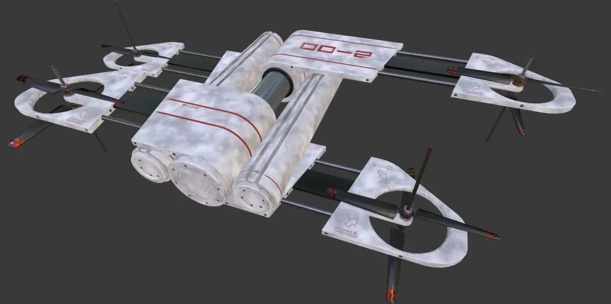 Model of Drone that I had in my head for some time. I didnt want weird futuristic blob that work on some magic and have lots of useless addons glued all over it that have no sense. I wanted more realistic version that just dont look like drones that we see today. Simple and easy to build/repair.