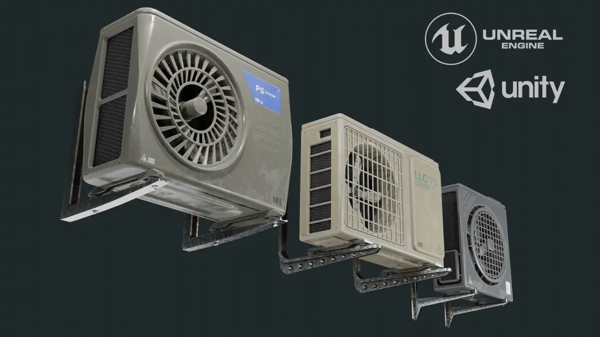 - 4 PBR materials (one for each air conditioner and one for all brackets)