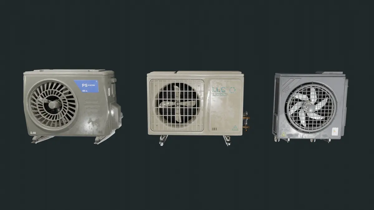 A Low-poly 3D model of 3 air conditioner made in Blender 2.91