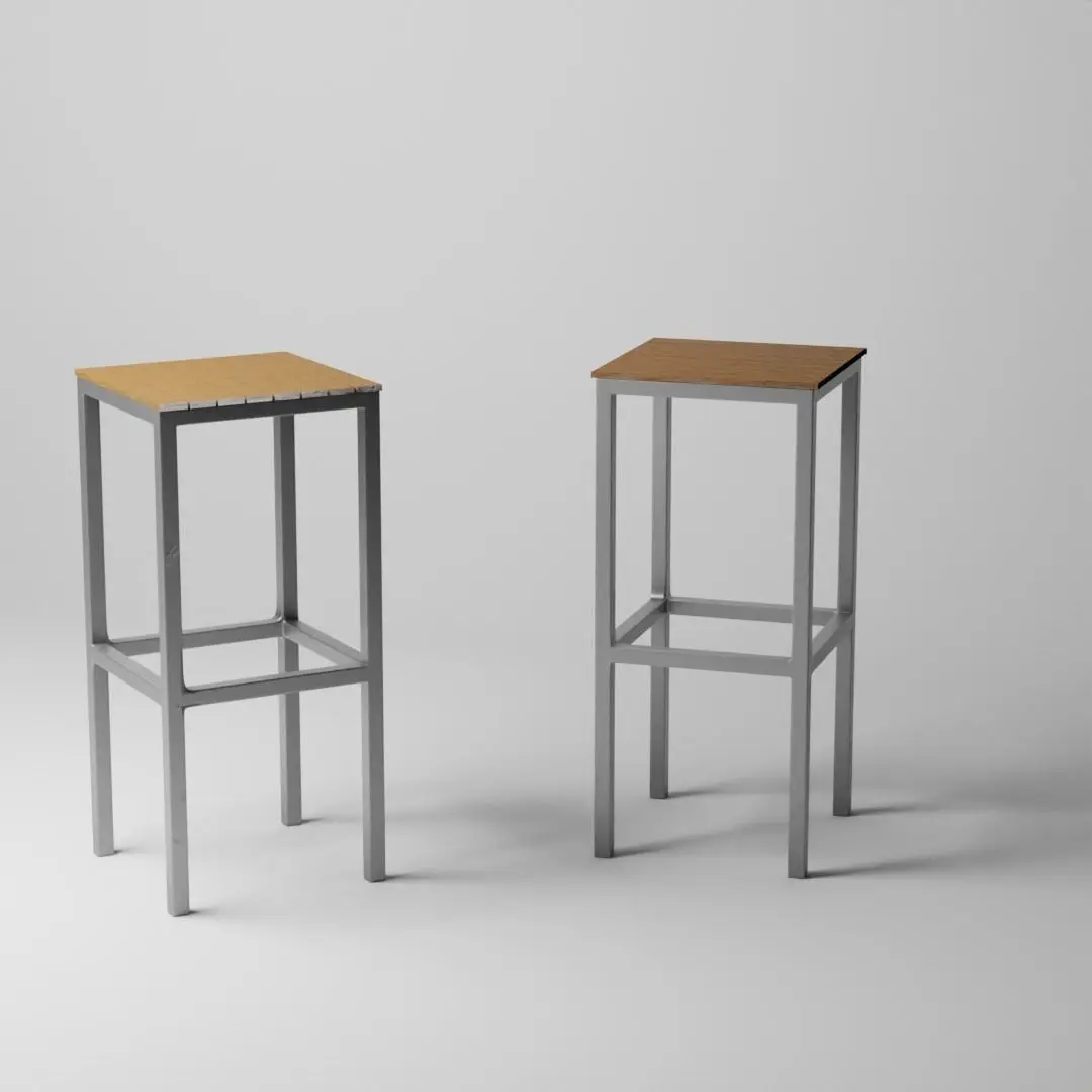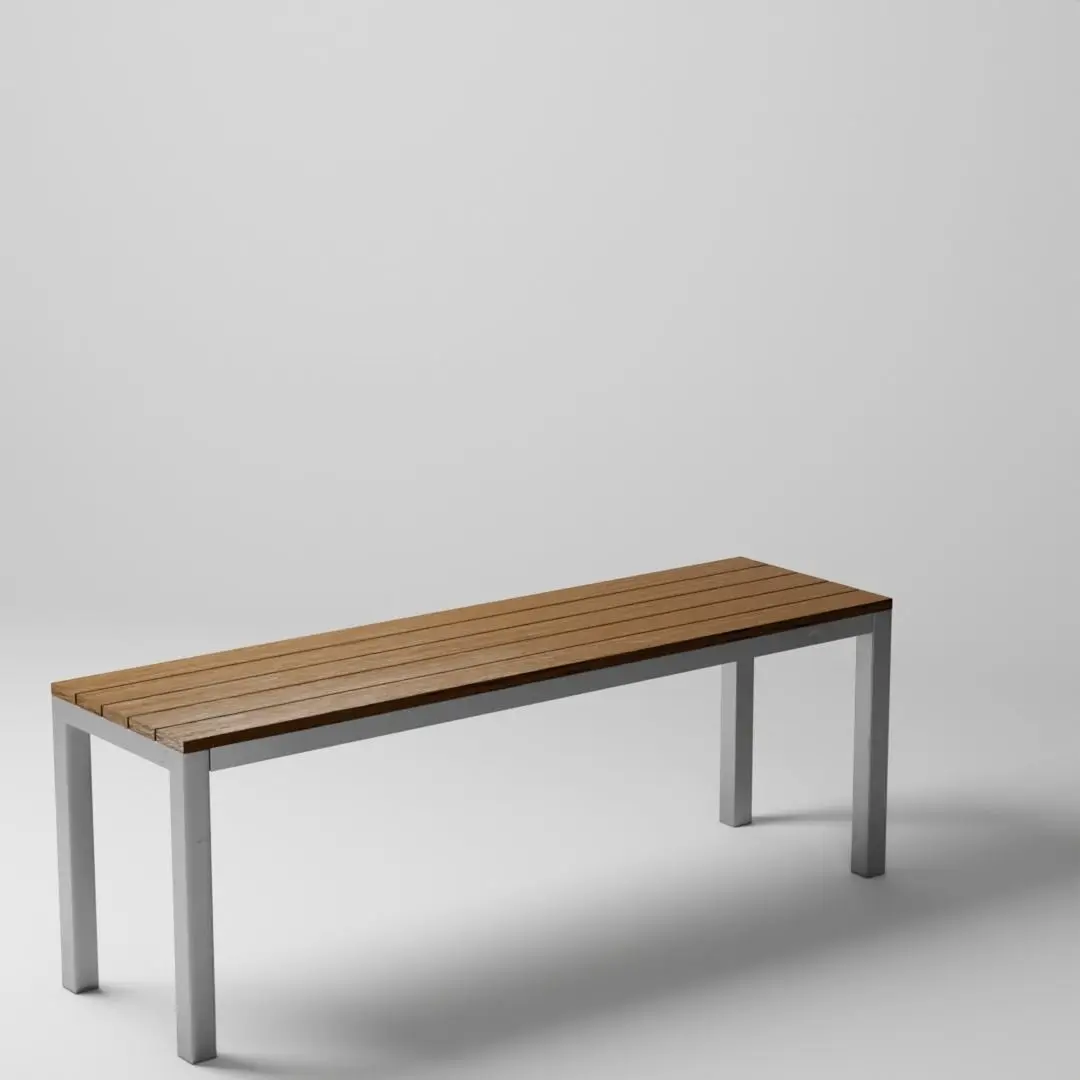 A set of 4 benches, 2 tables, and a chair (opened and closed). A perfect compliment to your outdoor scenes with its sleek and modern design. Made with plywood and aluminum feet, provides an attractive and low maintenance product for outdoor needs.Designs by Cortesi Home