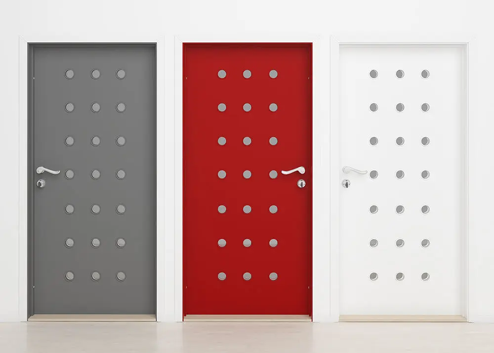 Exterior door 03 - high quality 3d model of Swedoor exterior door in 3 colours with handle, lock, lockplate, frame, doorstep, molding with nail holes, metal fittings,hinges, metal and plast window gadget, and gadget around the door all higly detailed with all maps included.