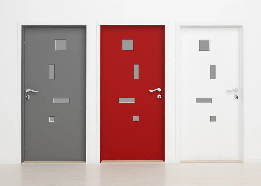 Exterior door 11 - high quality 3d model of Swedoor exterior door in 3 colours with handle, lock, lockplate, frame, doorstep, molding with nail holes, metal fittings,hinges, metal and plast window gadget, and gadget around the door all higly detailed with all maps included.