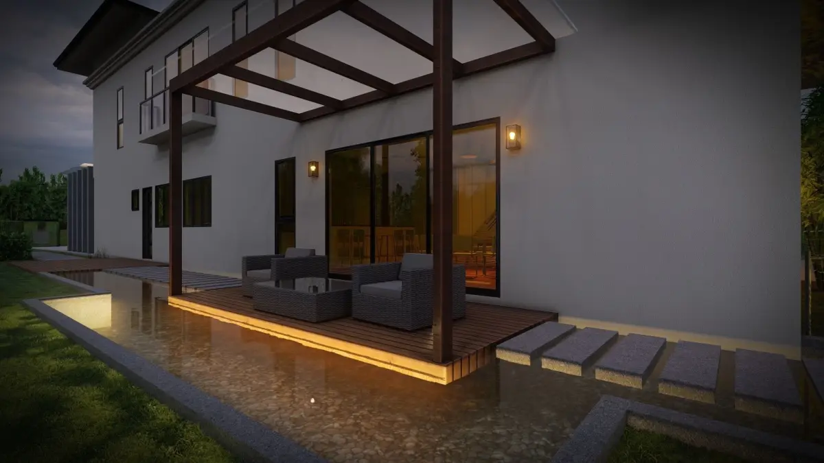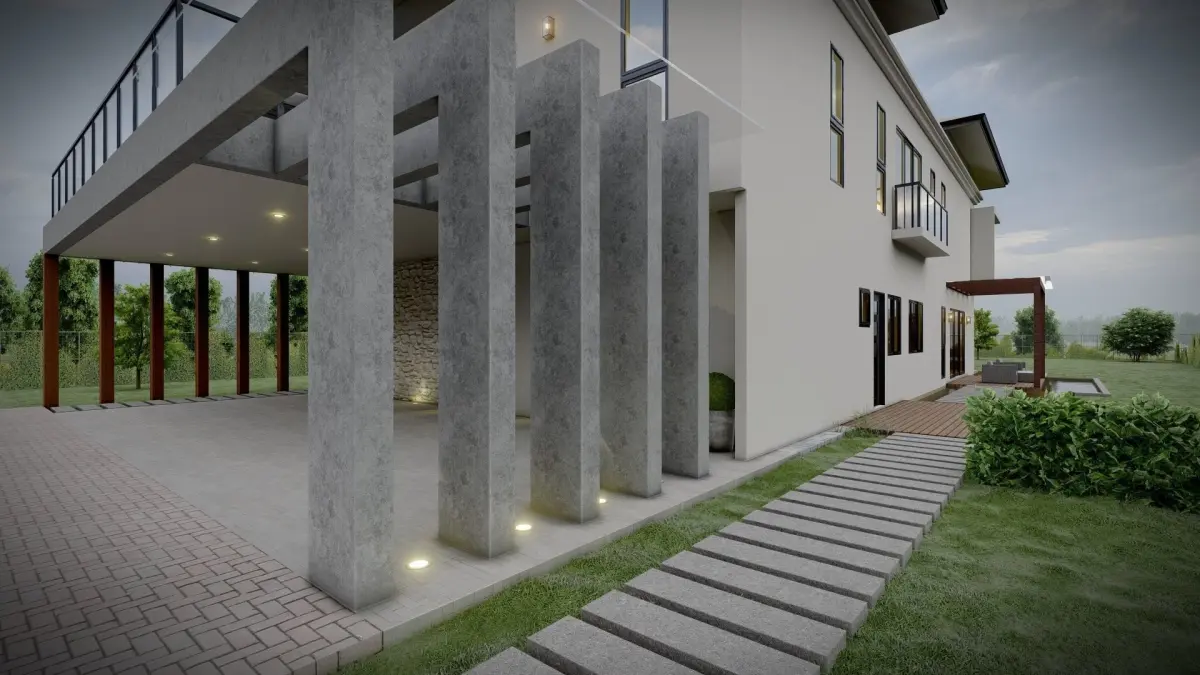 This is a fully textured exterior scene. Modeled with 3DsMax, rendered with Lumion. Highly-detailed models, realistic renderings. You can also use the interior areas and render the inside of the house.