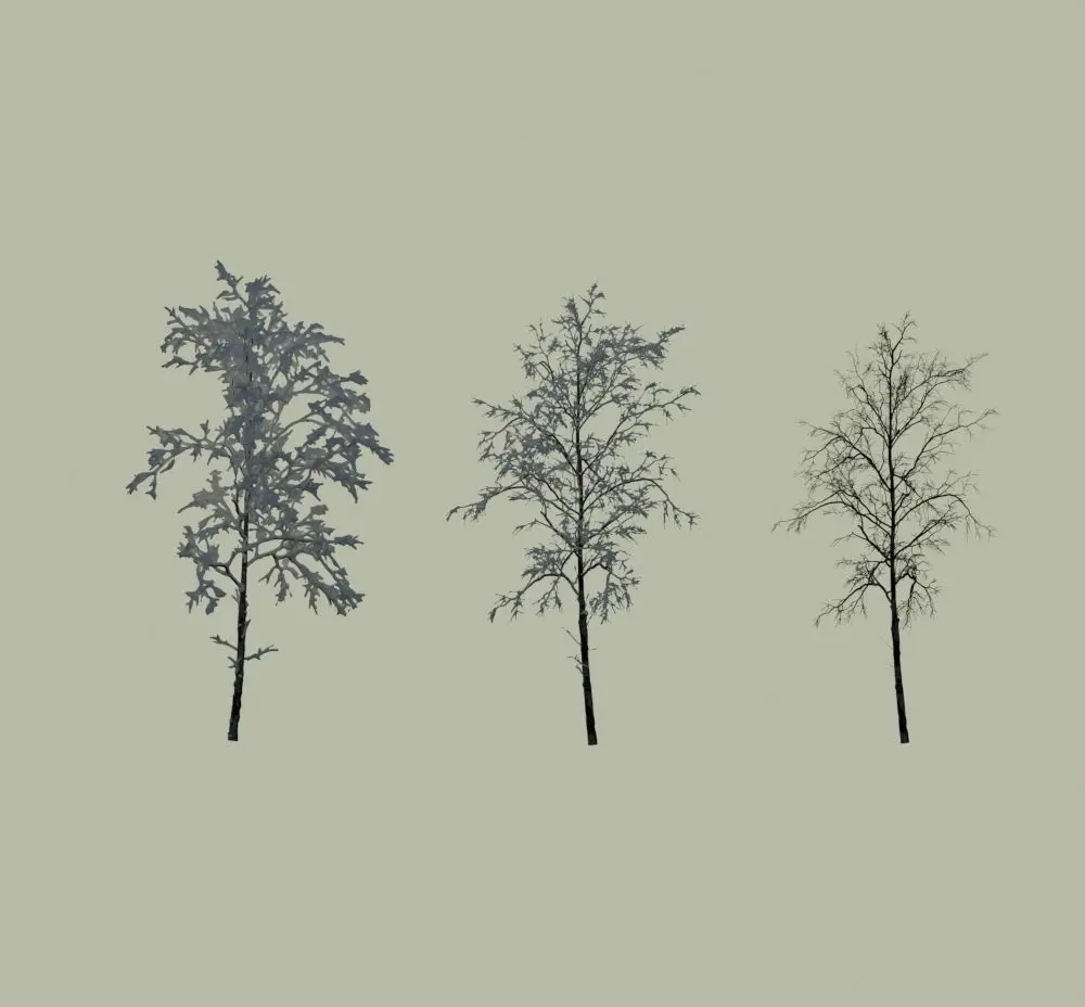 OBJ file only has 3 Trees because of size limitations: tree with no snow, light snow and heavy snow like the preview shows