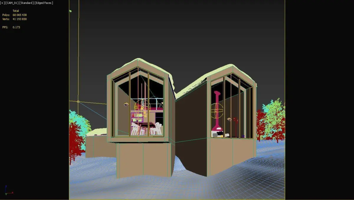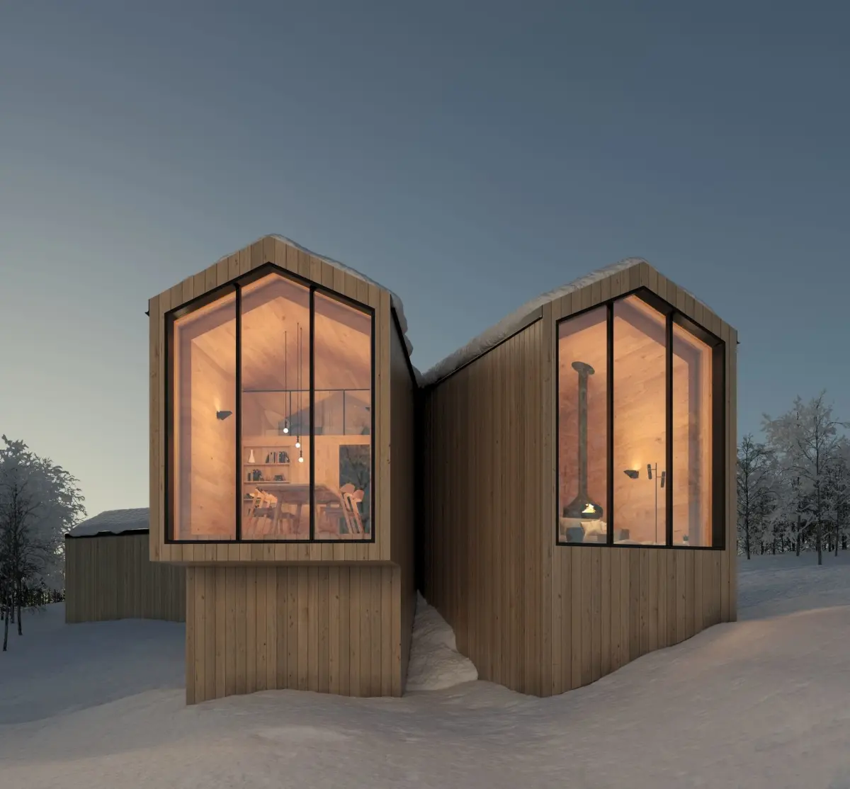 This is a fully textured exterior scene with natural light setup, ready to render with V-Ray for 3d Max. The cabin is inspired by a Norwegian Cabin designed by Ramstad Arkitekter Reiulf