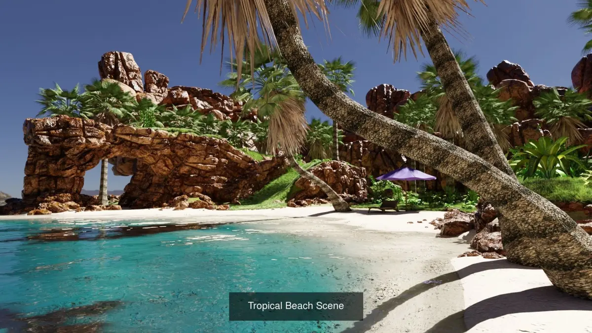 Tropical Beach Scene Made In Blender3D v2.92.