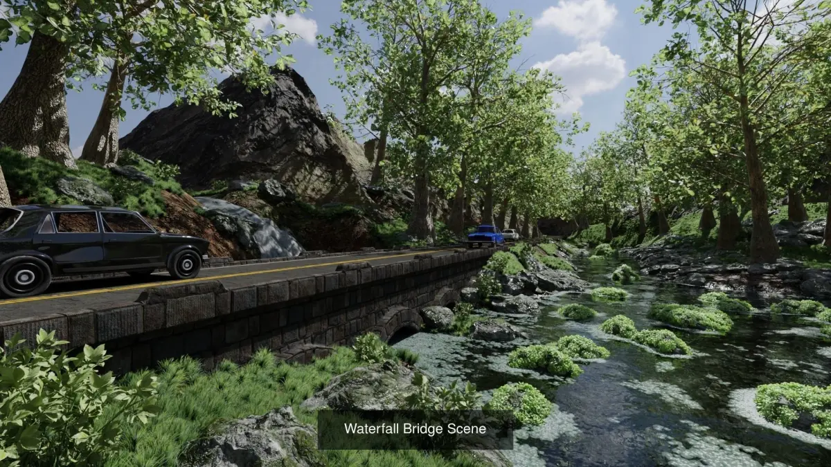 Waterfall Bridge Scene Made In Blender3D v2.92. Waterfall is not a simulation